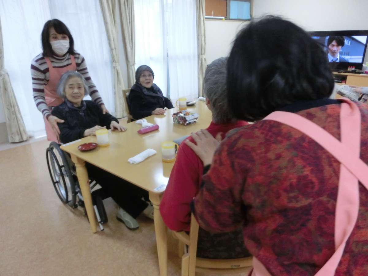 2月中旬、ボランティアによるハンドセラピー体験♪肩もみや歌による癒しの空間を提供して頂きました。