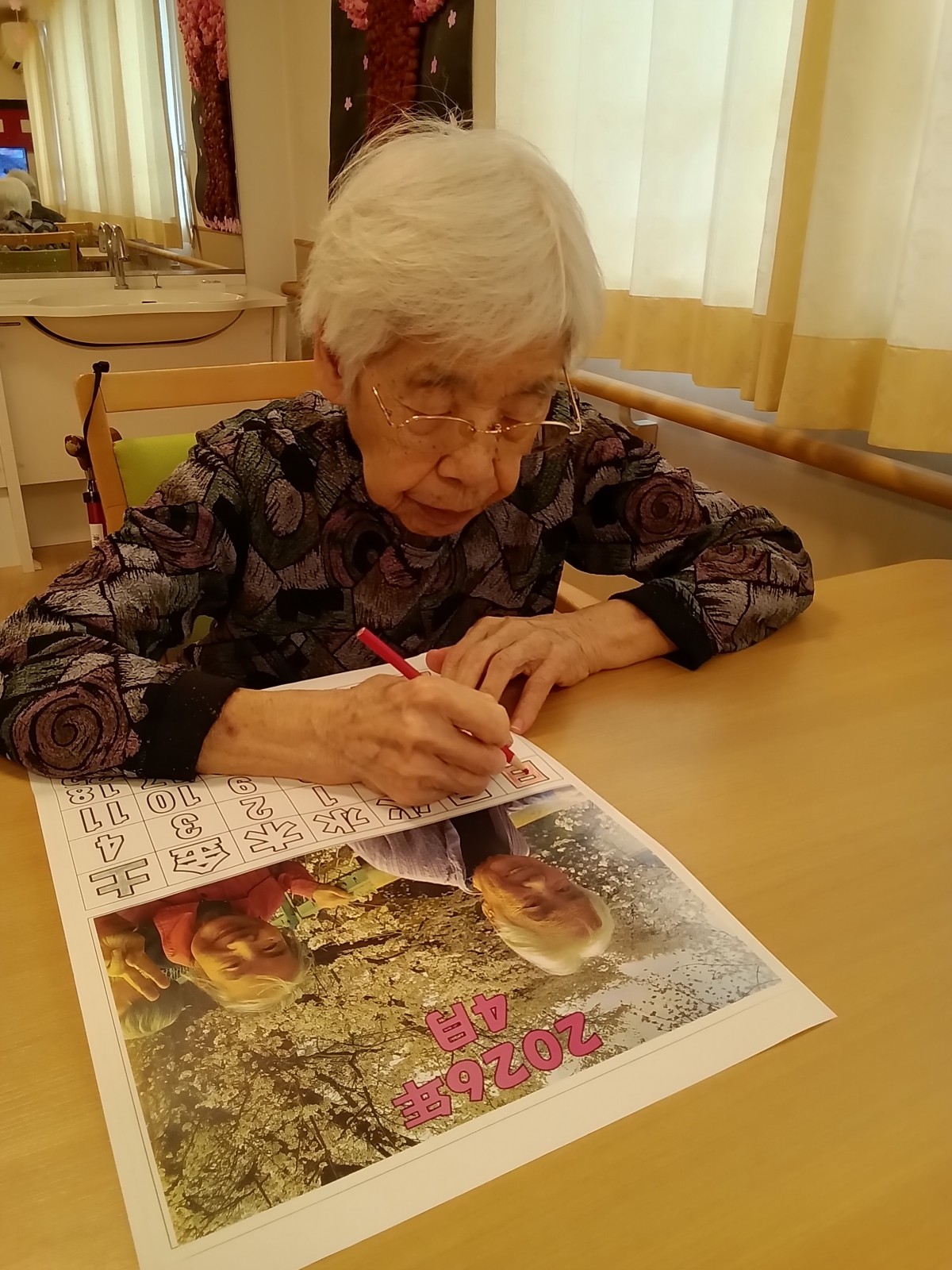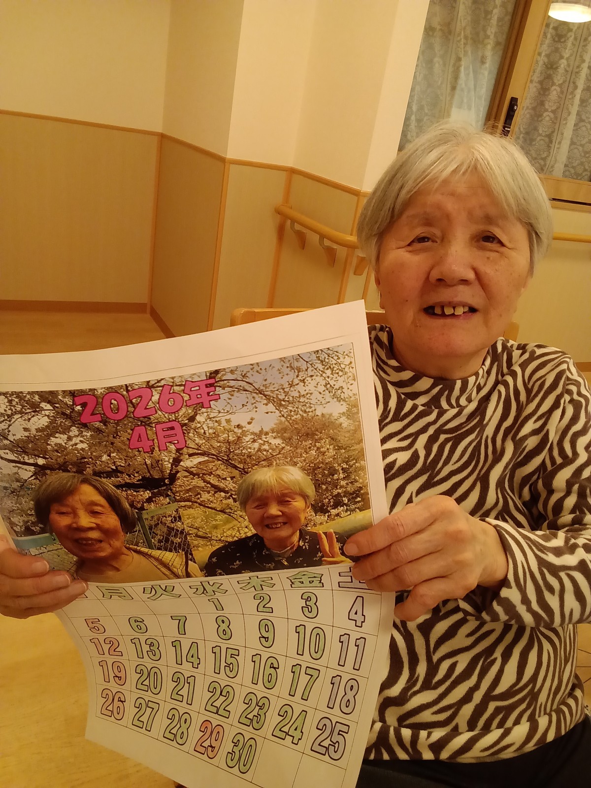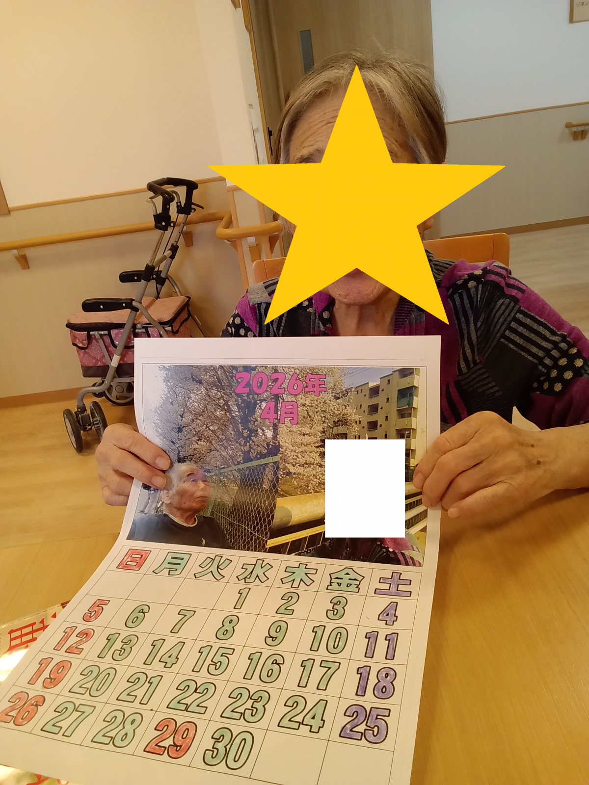 カレンダーの写真を見て「この間、桜を見に行ったときのね!」と楽しそうにお話しされておりました(*^-^*)