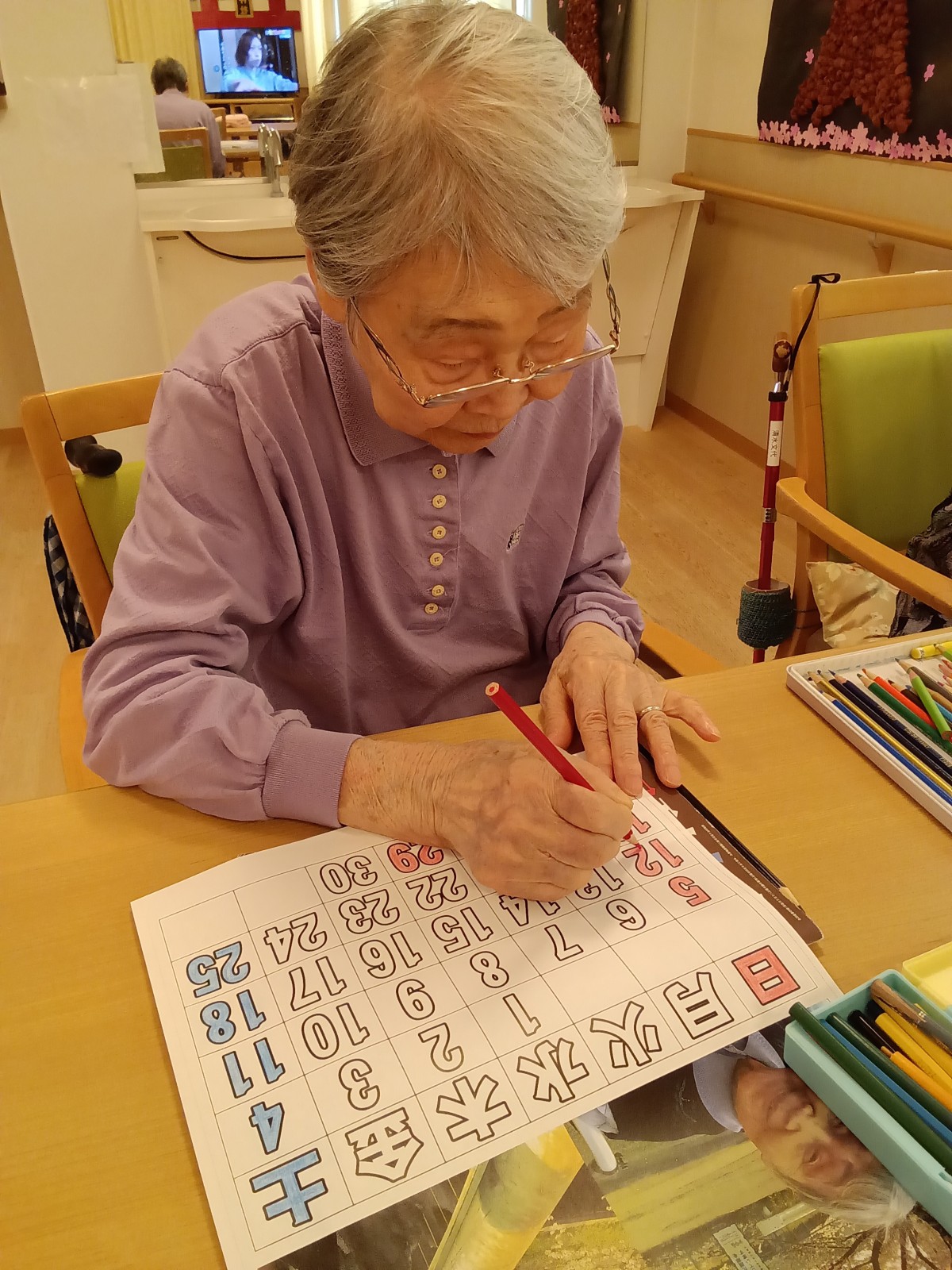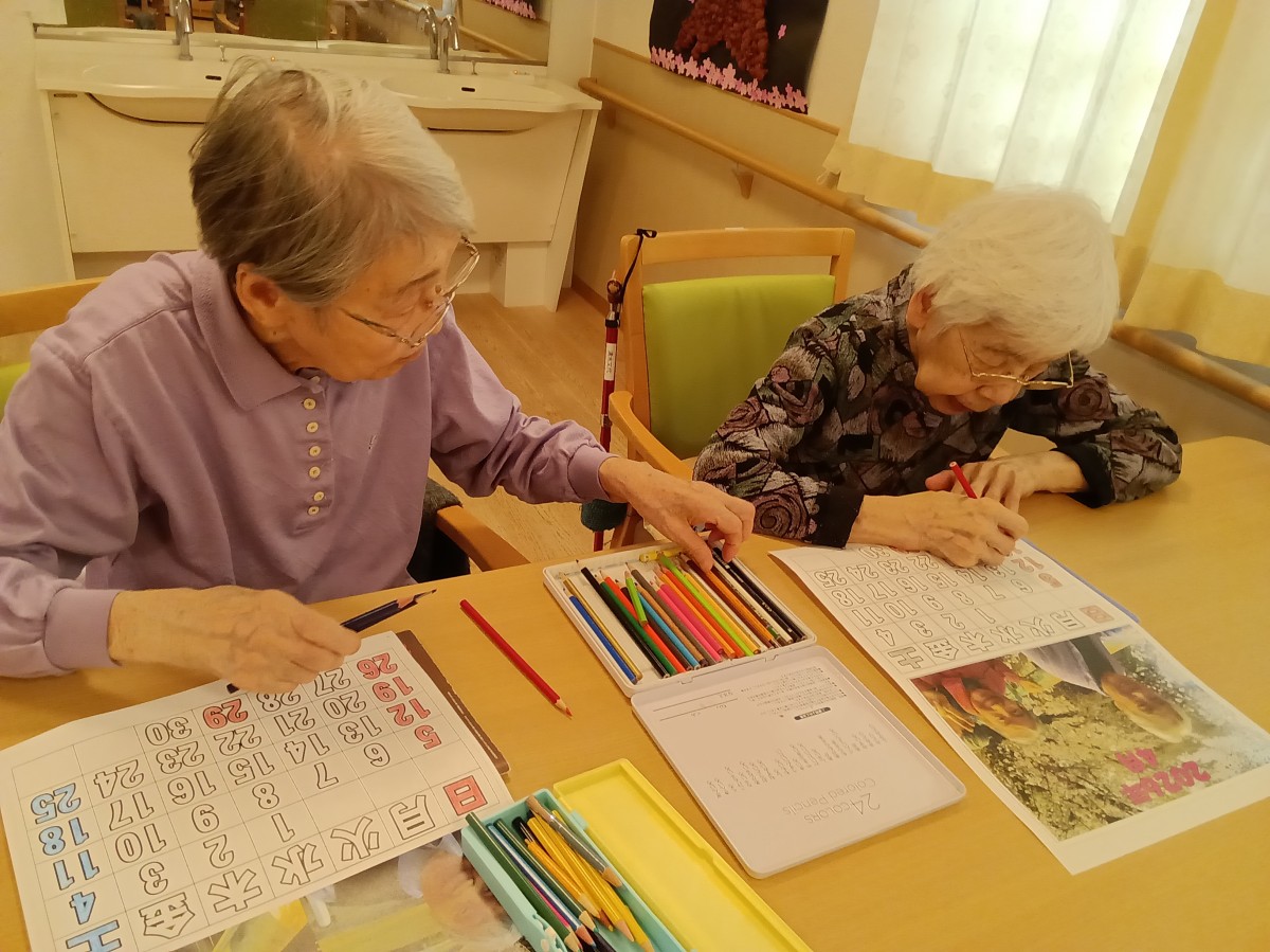 4月のカレンダーを塗っていただきました!!