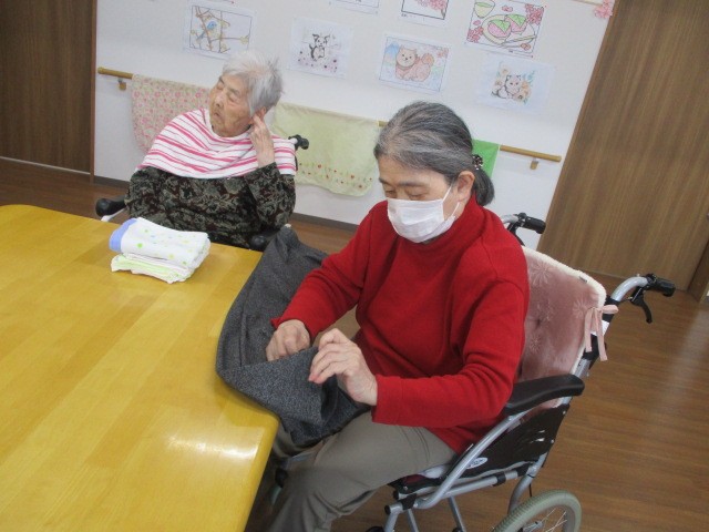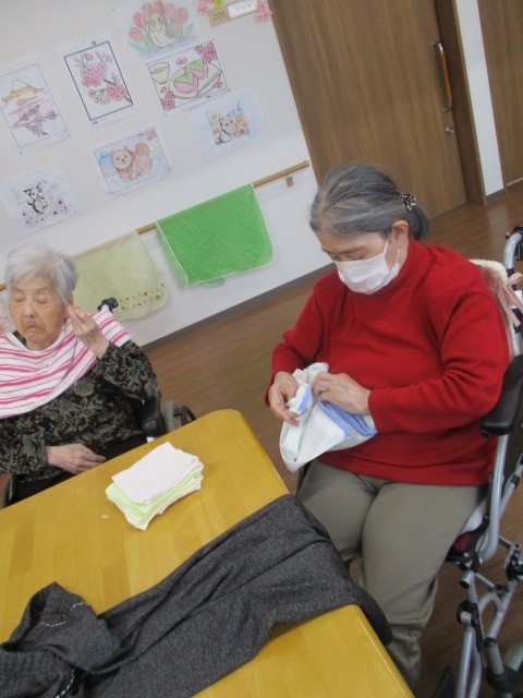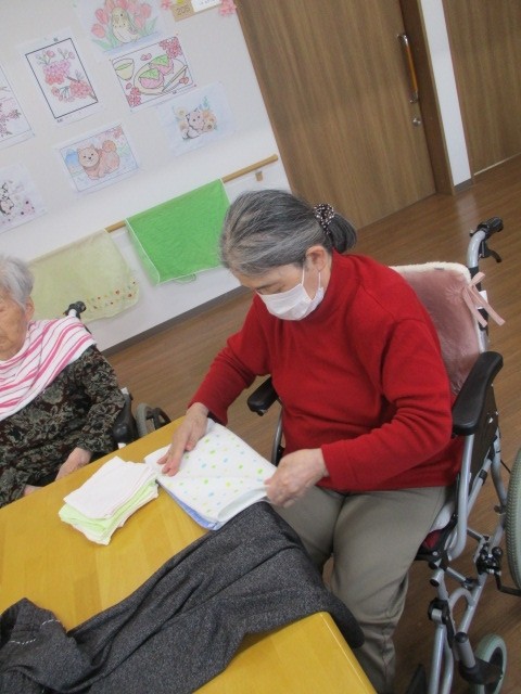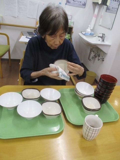 今日は2階でお手伝い(食器拭き・お洗濯物畳み)を行いました。 お手伝いをされているご様子をお知らせいたします!