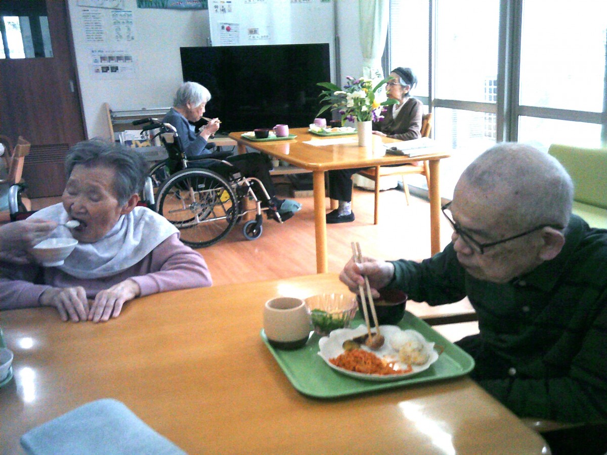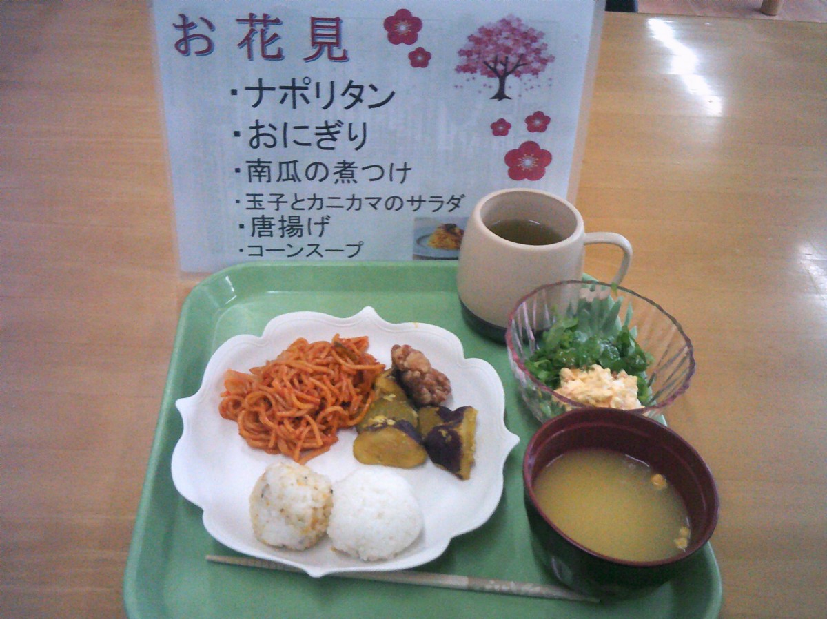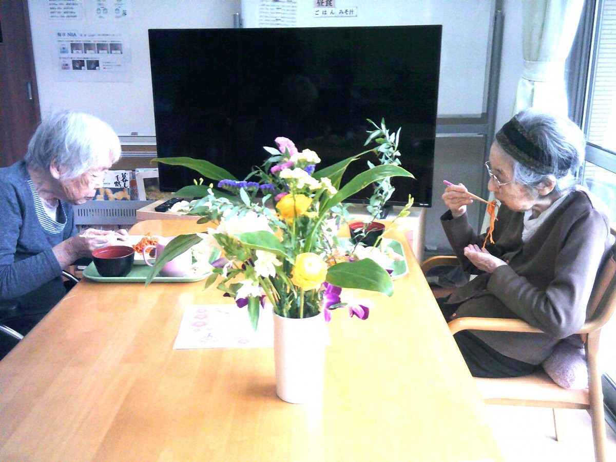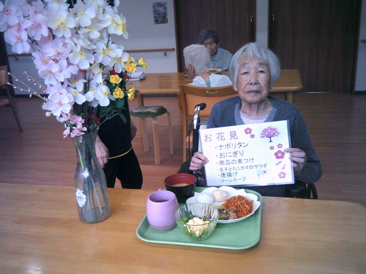 今日は施設内でお花見(昼食会)を行いました。 昼食を召し上がられているご様子をお知らせいたします!!