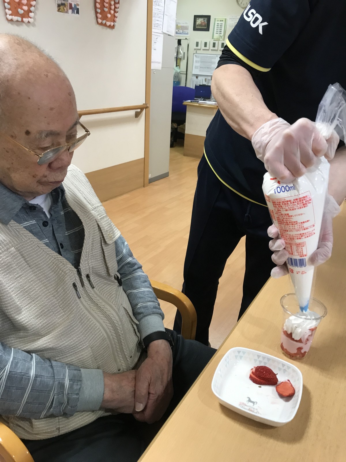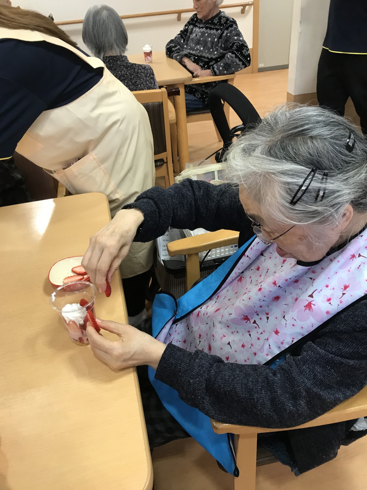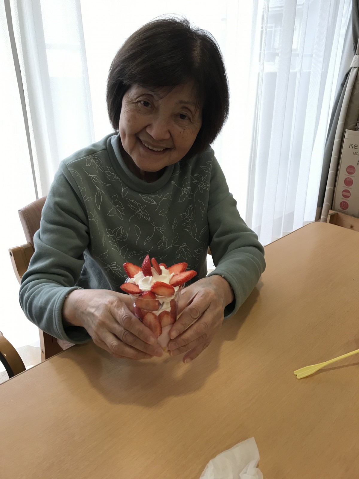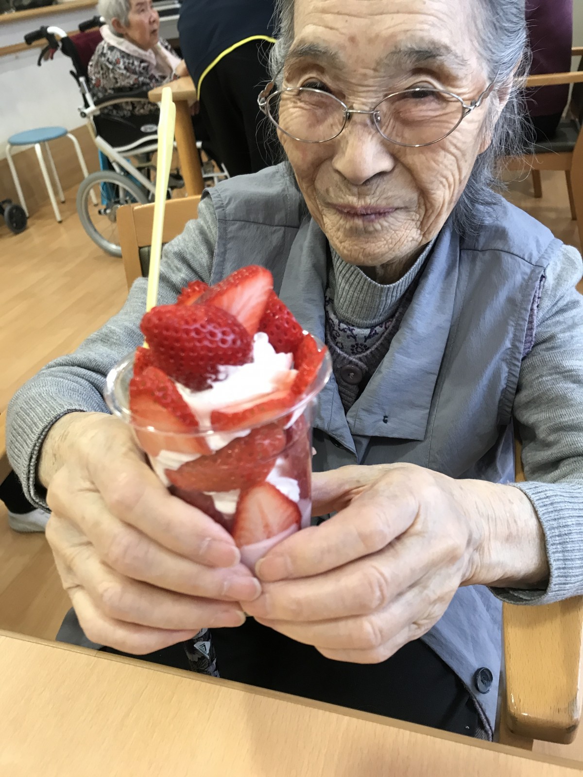 ユニット2で実施した避難訓練の後に、同ユニットにて苺を使ったパフェを手作りしました♪