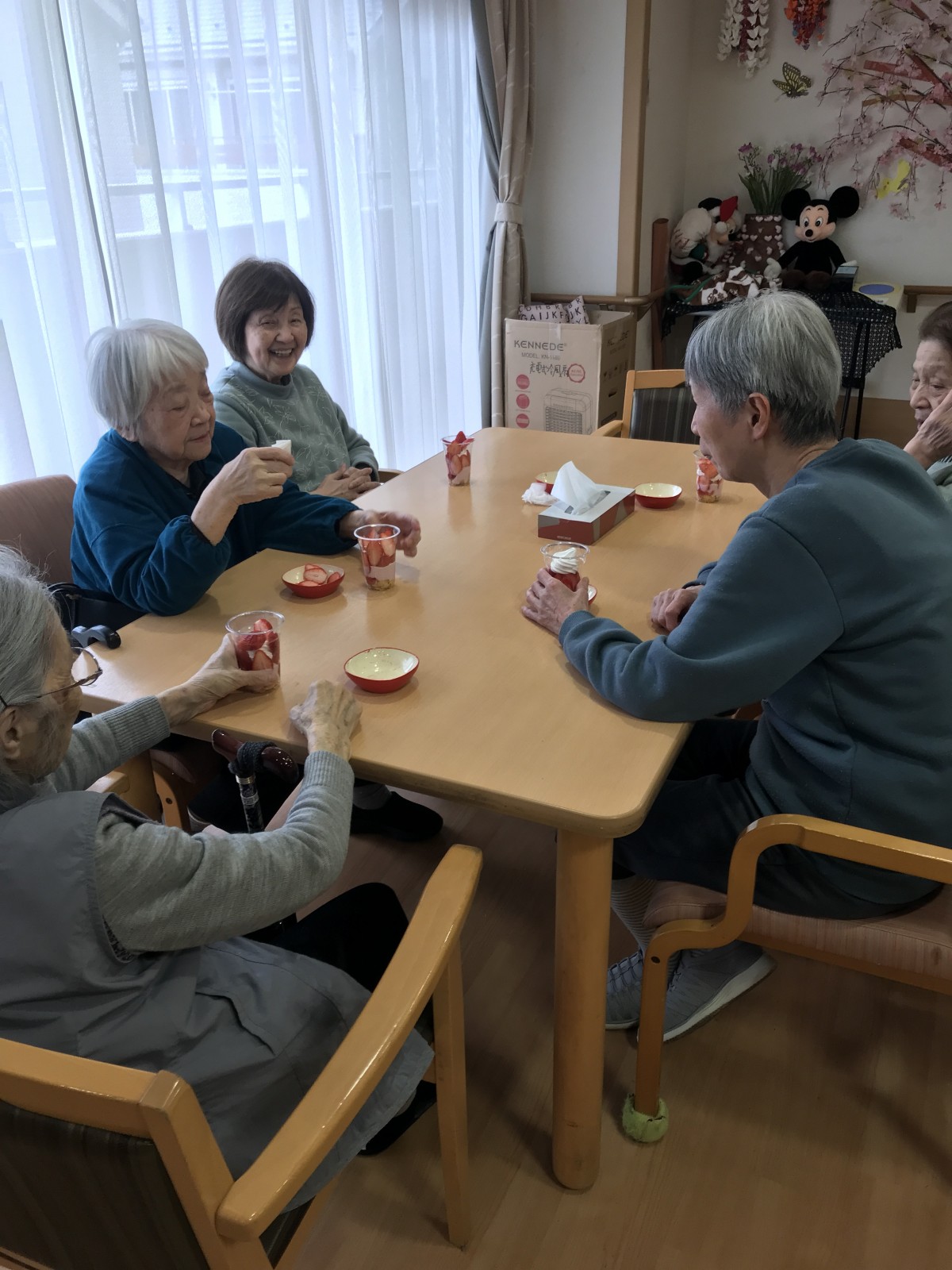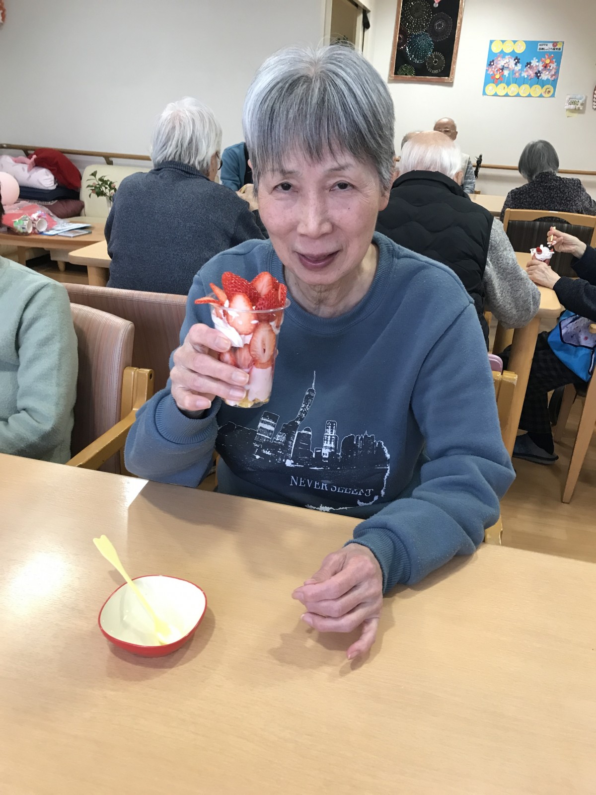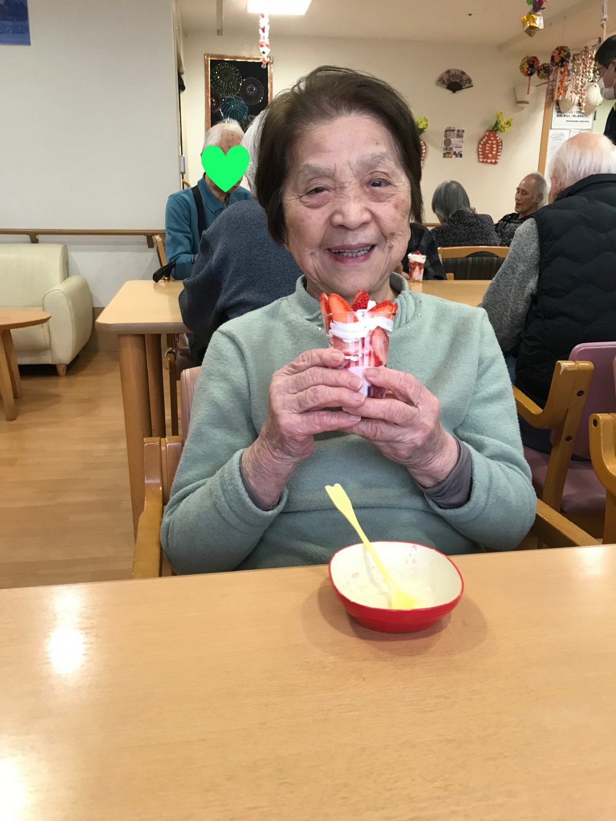 ユニット2で実施した避難訓練の後に、同ユニットにて苺を使ったパフェを手作りしました♪