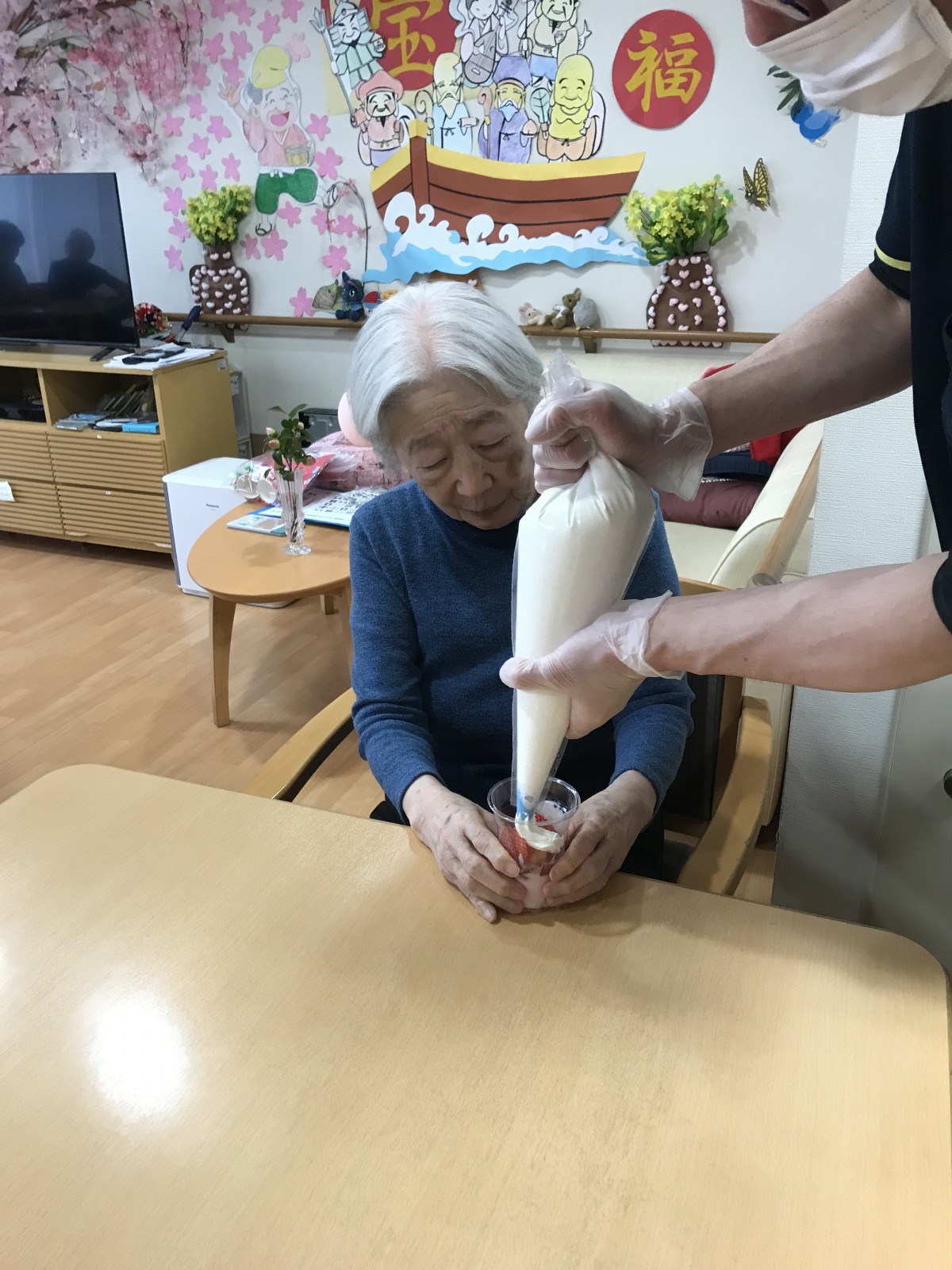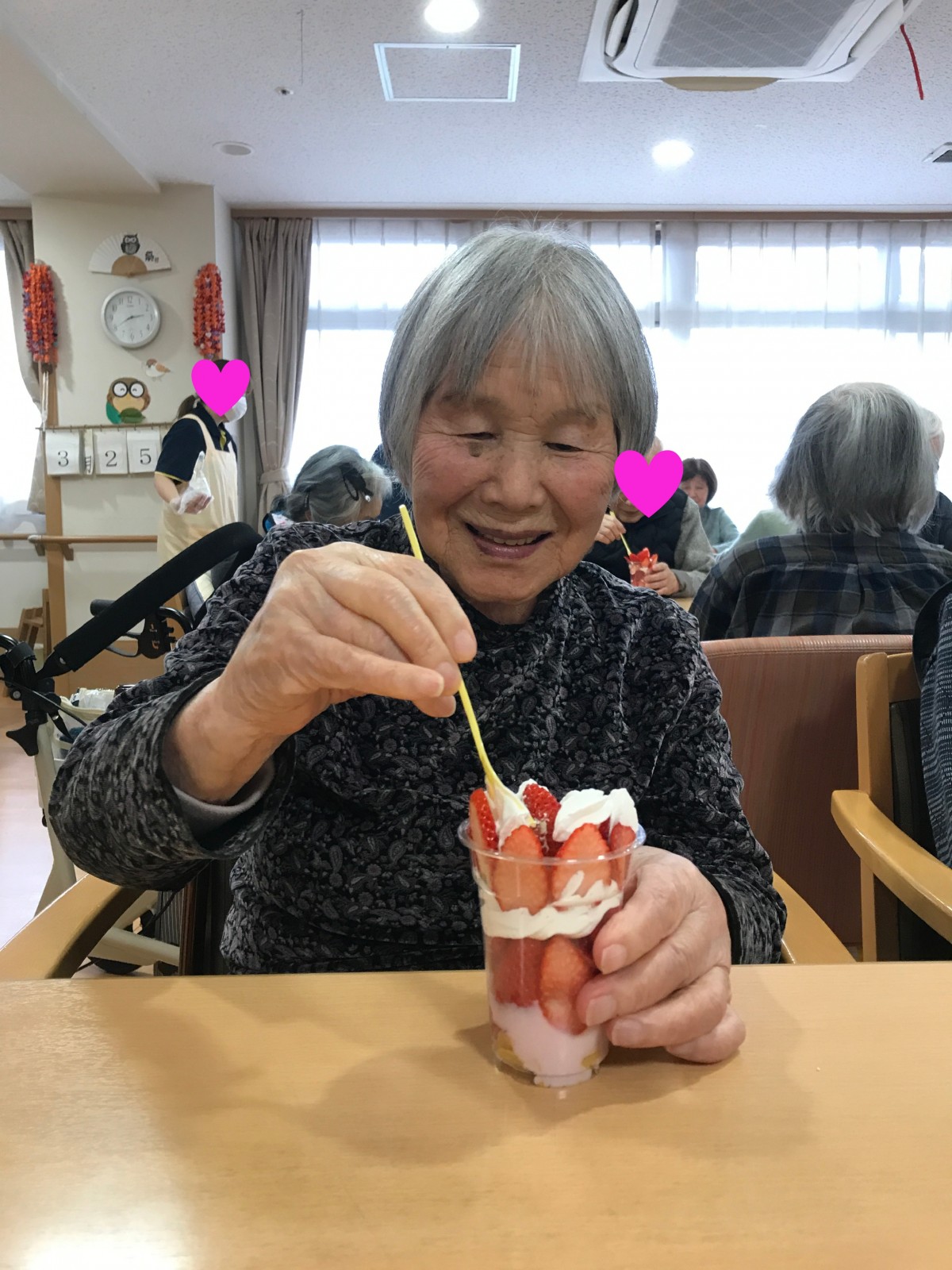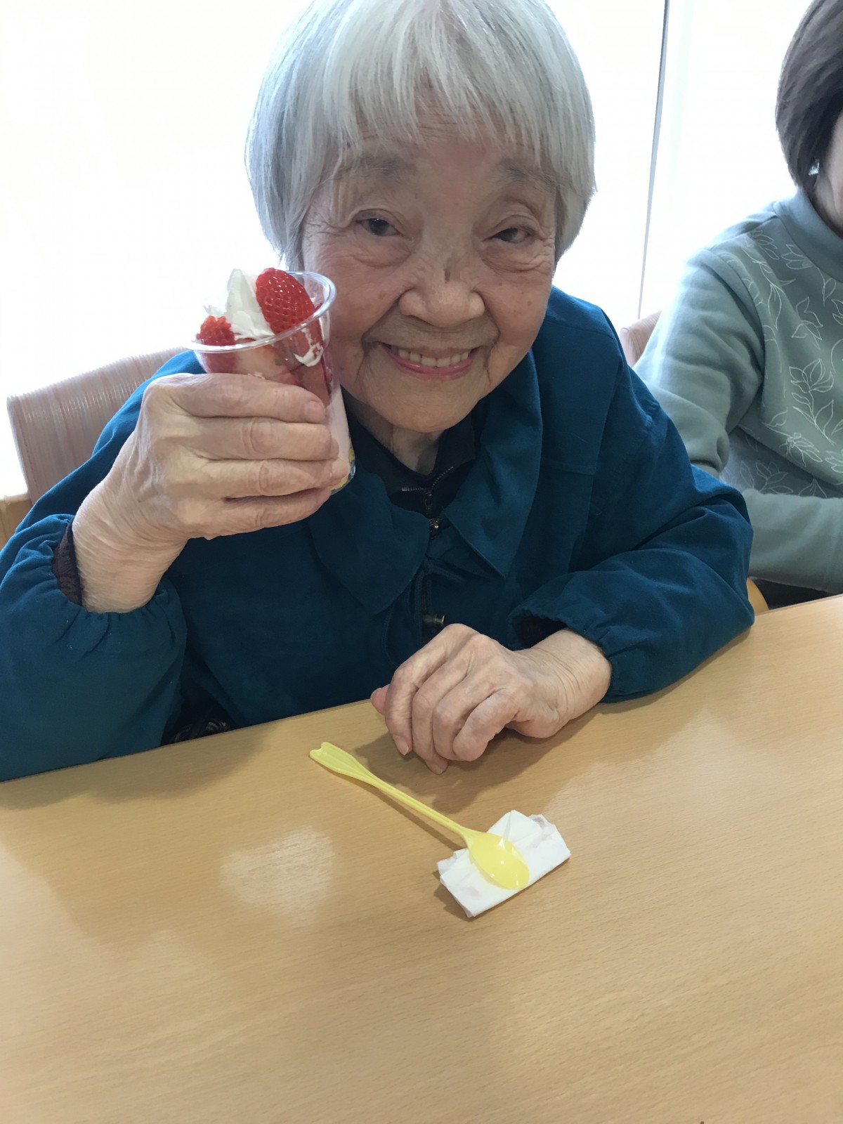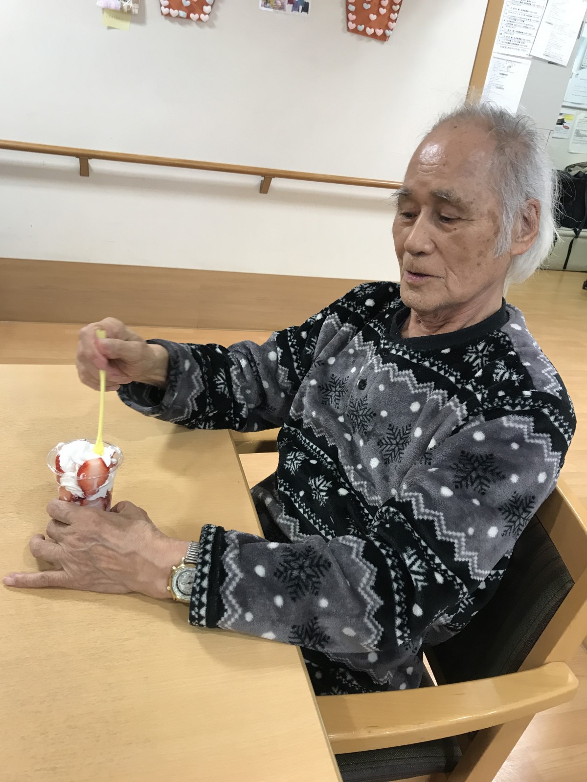 ユニット2で実施した避難訓練の後に、同ユニットにて苺を使ったパフェを手作りしました♪