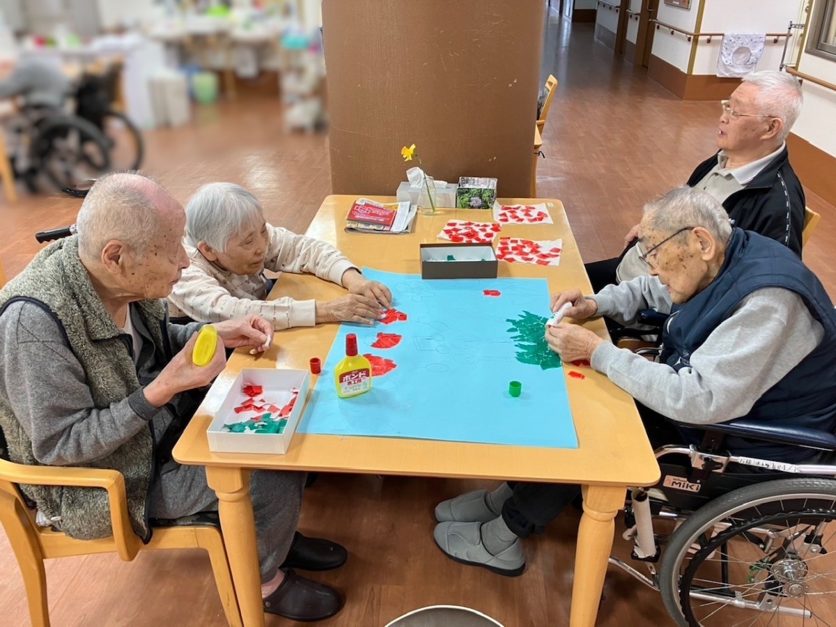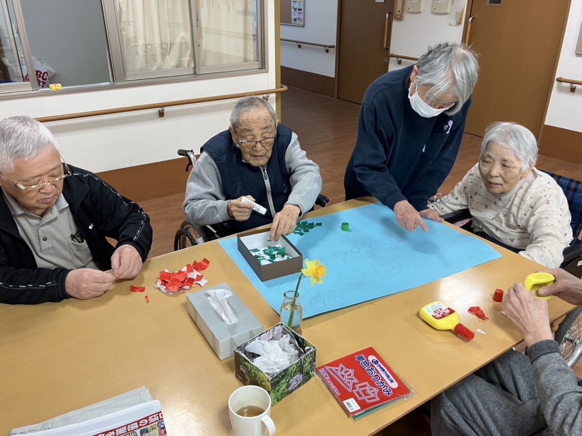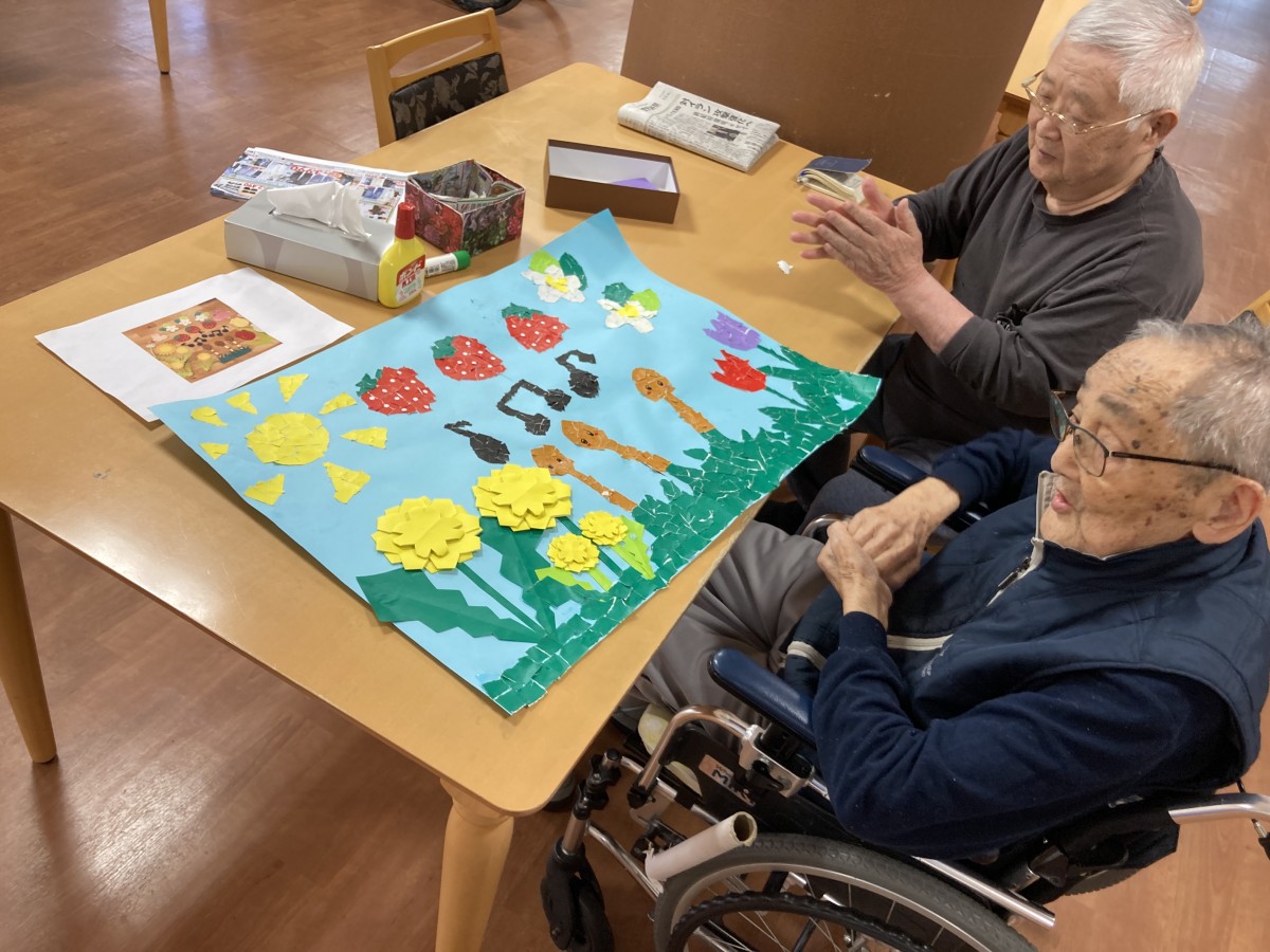 今回は二階の利用者様で壁画を作っていただいた様子を、ブログ担当のめっしーがご紹介していきます!