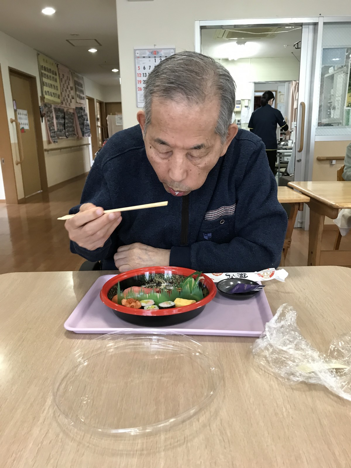 4月6日横浜三保2では出前昼食をとりました。今回はみんな大好きなお寿司!