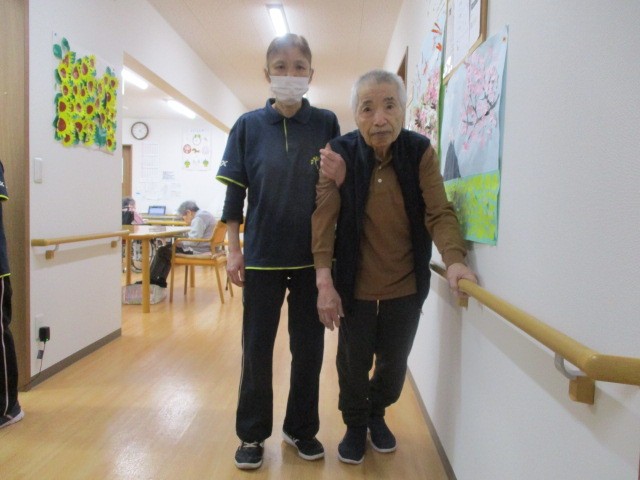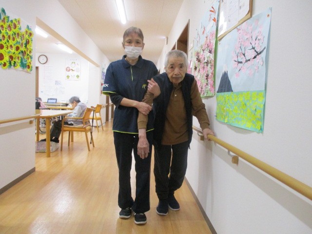 日々のご様子です!! 室内を職員と一緒に歩かれています( ^ω^)・・・ 支えられて嬉しそうですね(^0_0^)