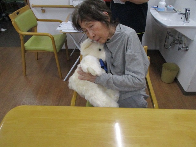 ぬいぐるみと一緒に写真を撮りました( ^ω^)・・・ きゅっとされています。 何を思っているのかしら~!!