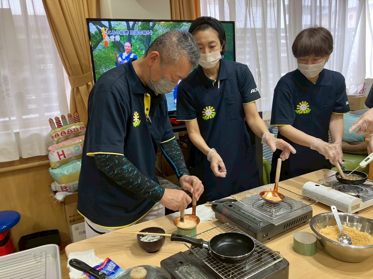 早速、焼きたてのカルメ焼きを利用者の皆さんに食べて頂き、「懐かし〜」 「甘〜い」と言ったお声が沢山聞こえ、喜んで頂けてスタッフ一同嬉しい限りです(*^▽^*)