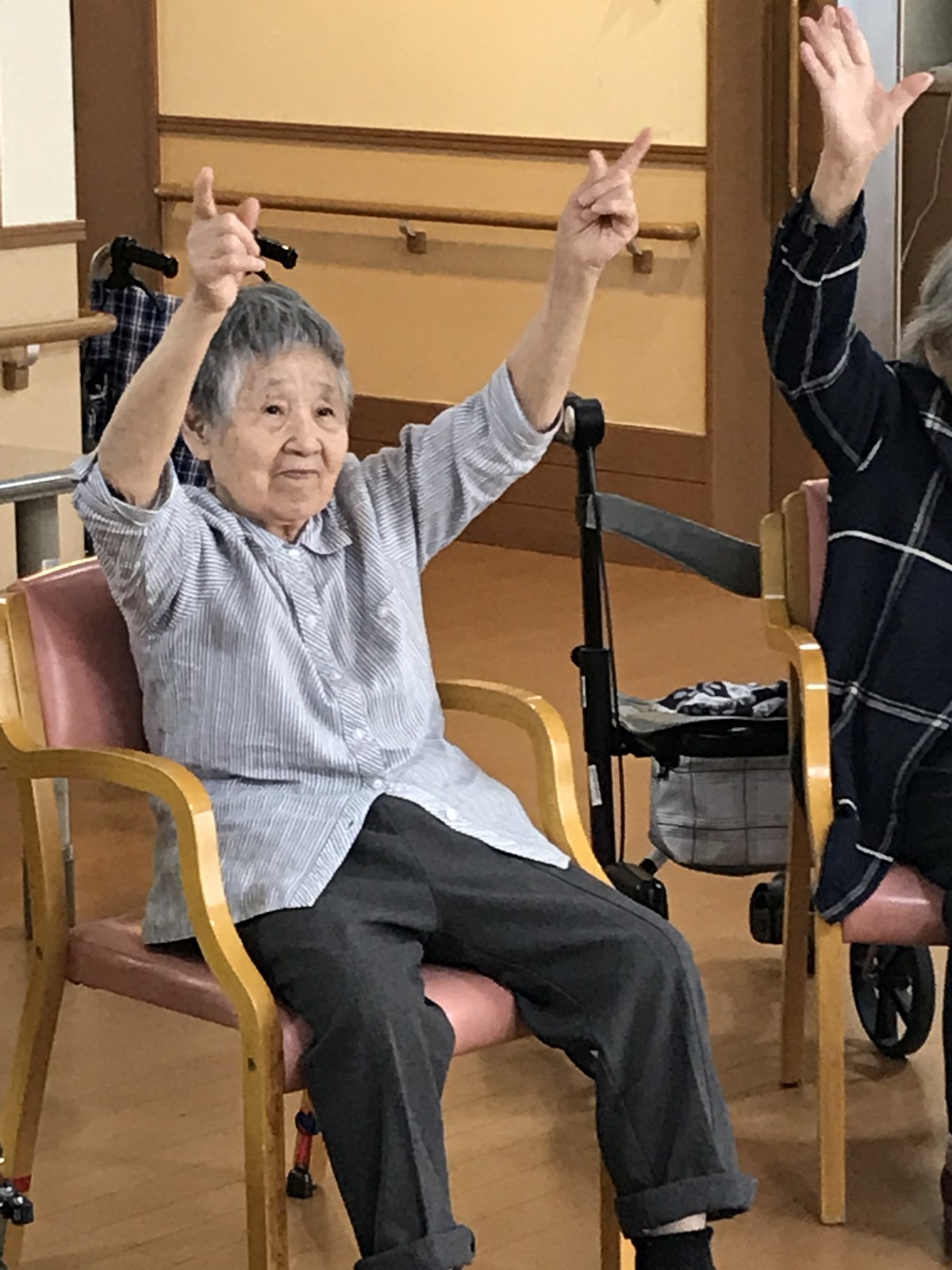 大きく手を上に伸ばされ