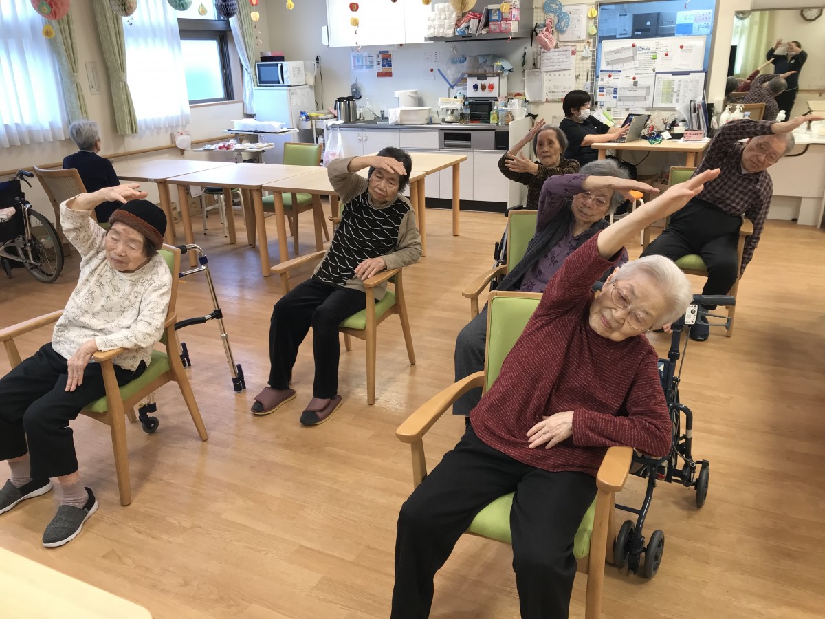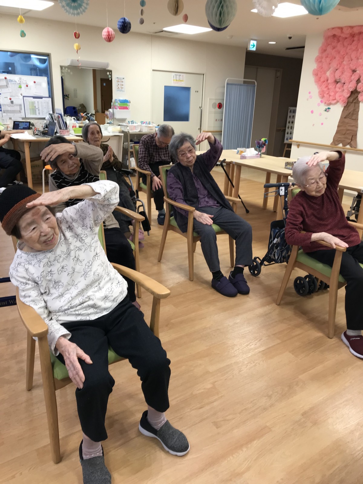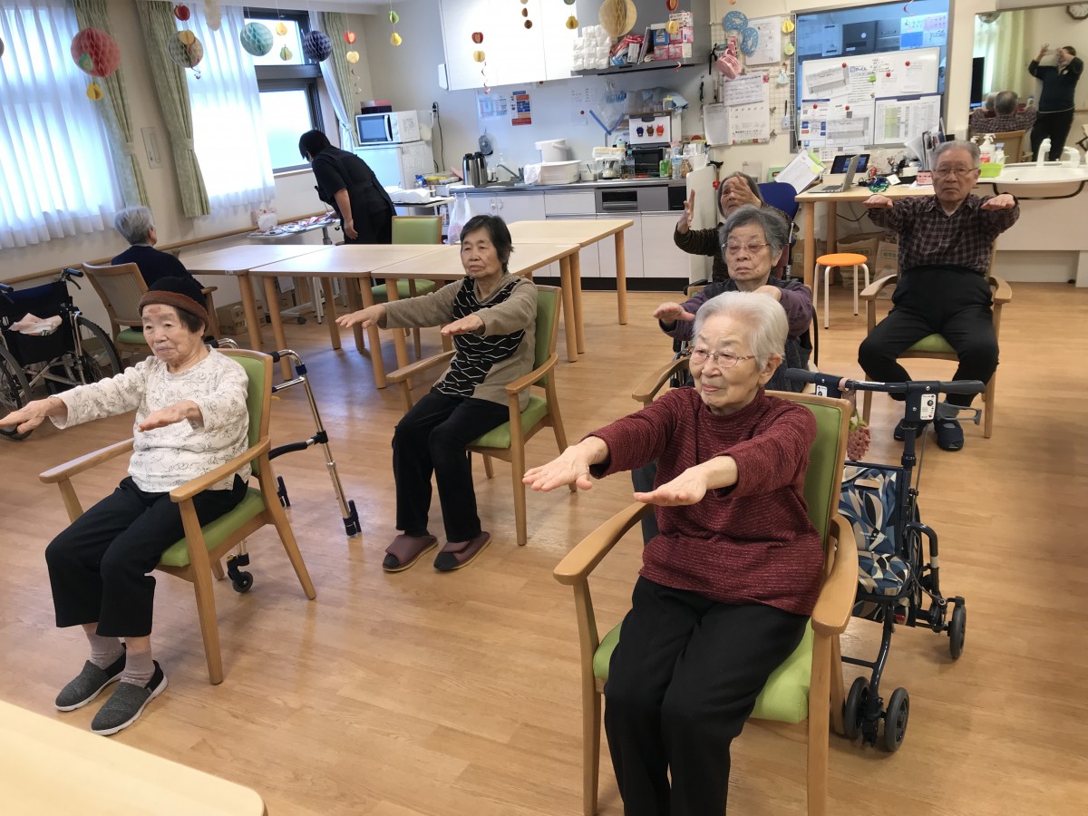 1階では参加率がとても高く、みなさん楽しく体操に取り組まれています٩( 'ω' )و