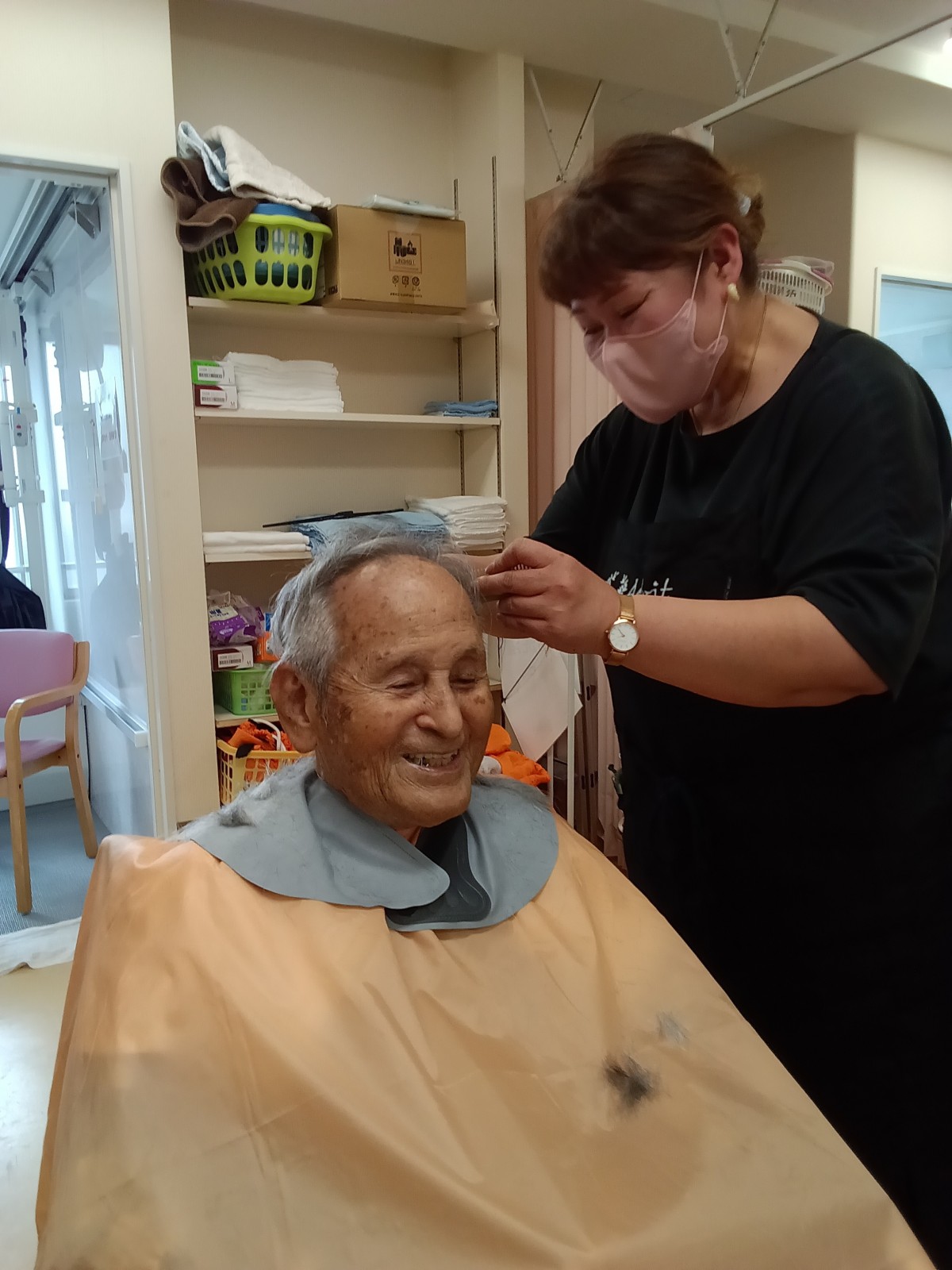 本日は、美容師さんに来ていただきました。