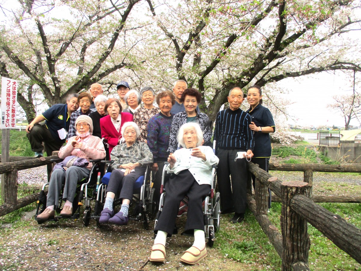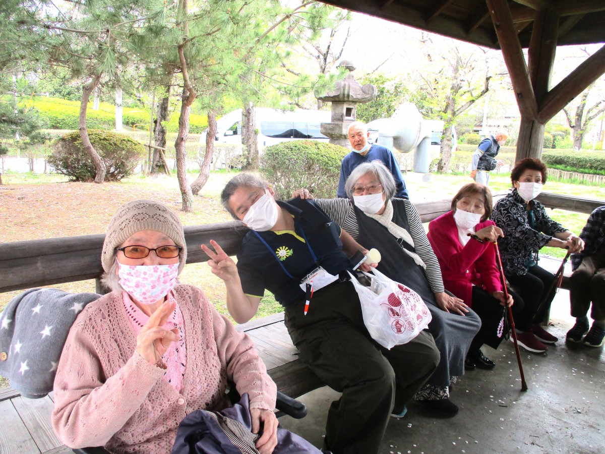 今回はご利用者様14名、職員3名でのお花見となり、とてもにぎやかな時間に♪