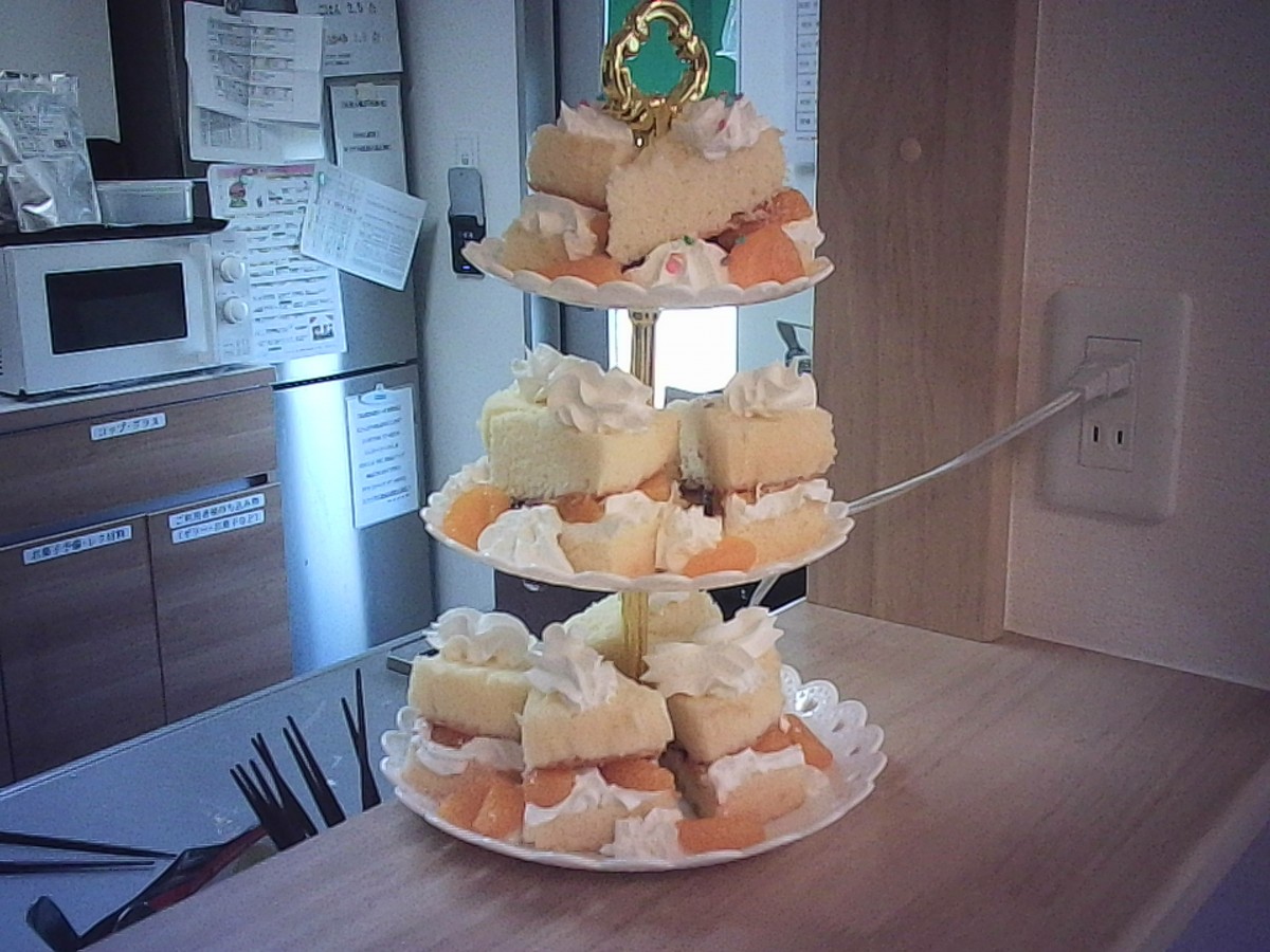 アフタヌーンティーのお皿にケーキを載せて見栄えも良く(*^▽^*)