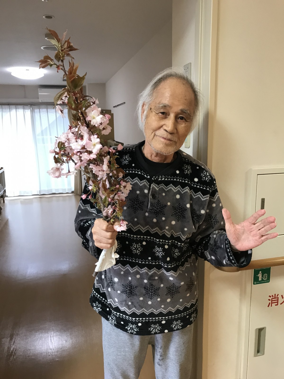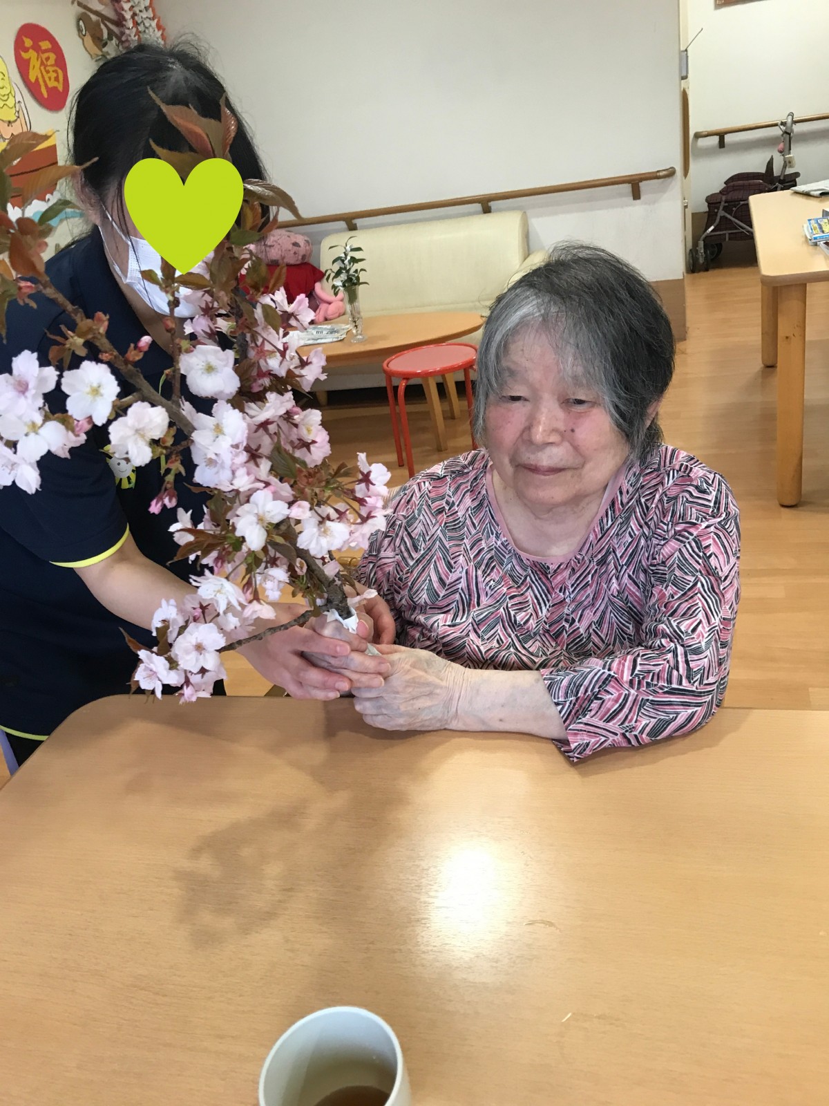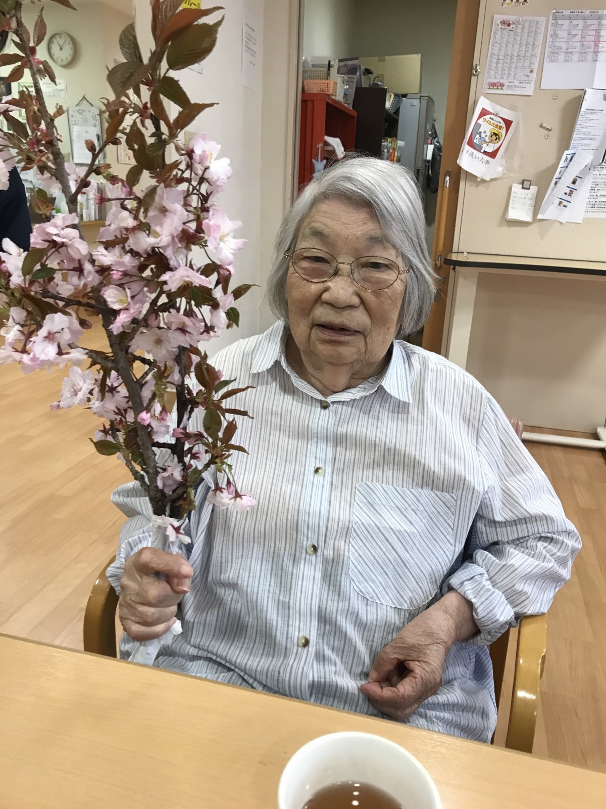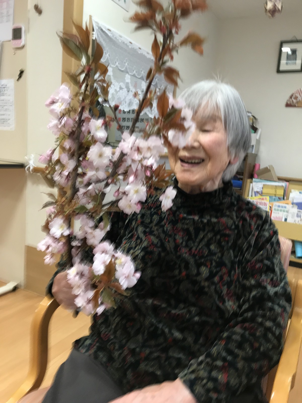 早速ユニットの皆様にお見せしたら、「あらー、桜ですか」「素敵ね」と感嘆の声が聞かれました!