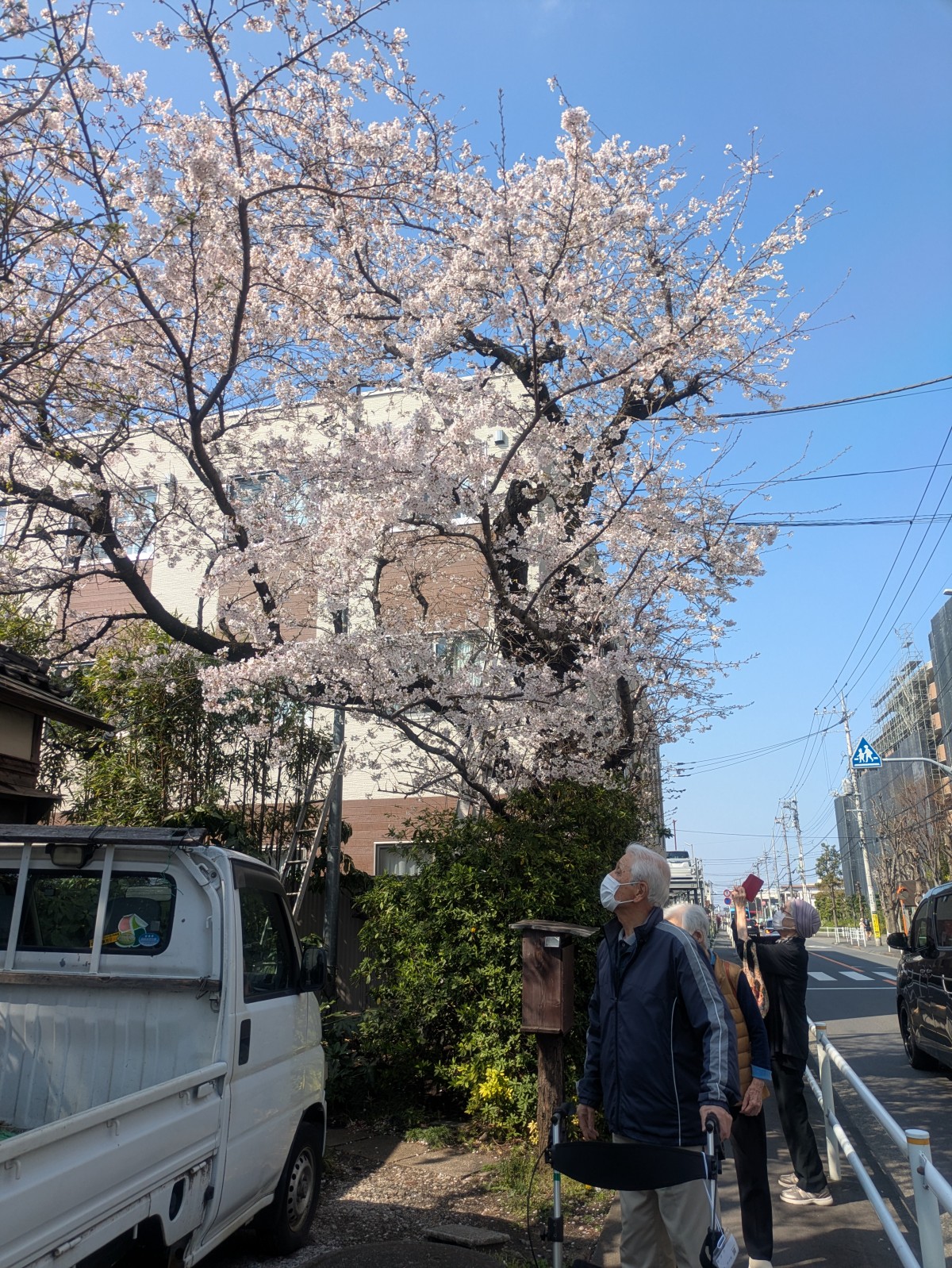 施設を出てすぐ満開の桜が♪