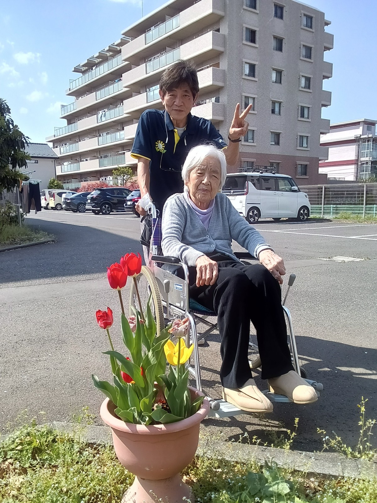 まだまだ花見を楽しめそうです。スタッフが植えているチューリップもきれいに咲いております。