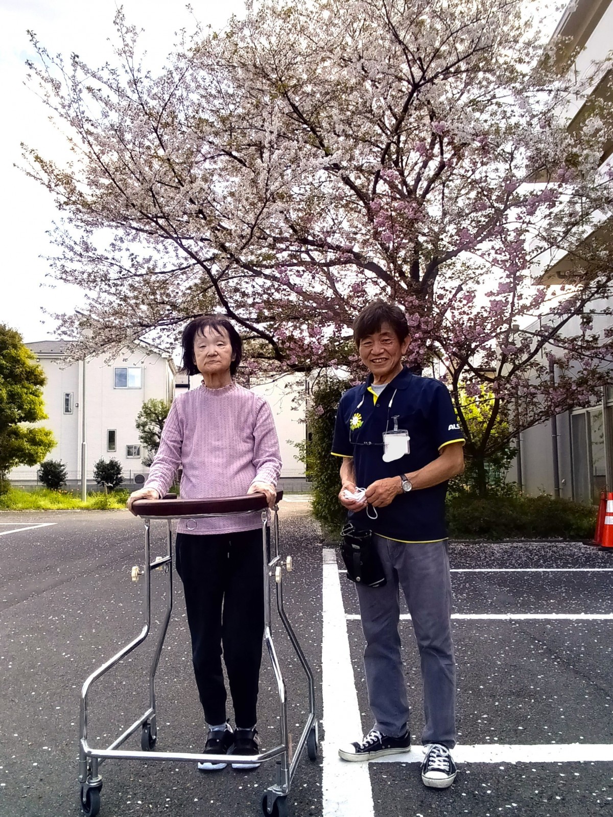 すこや家・志木柏町の敷地内には3階の窓まで届く大きなソメイヨシノと