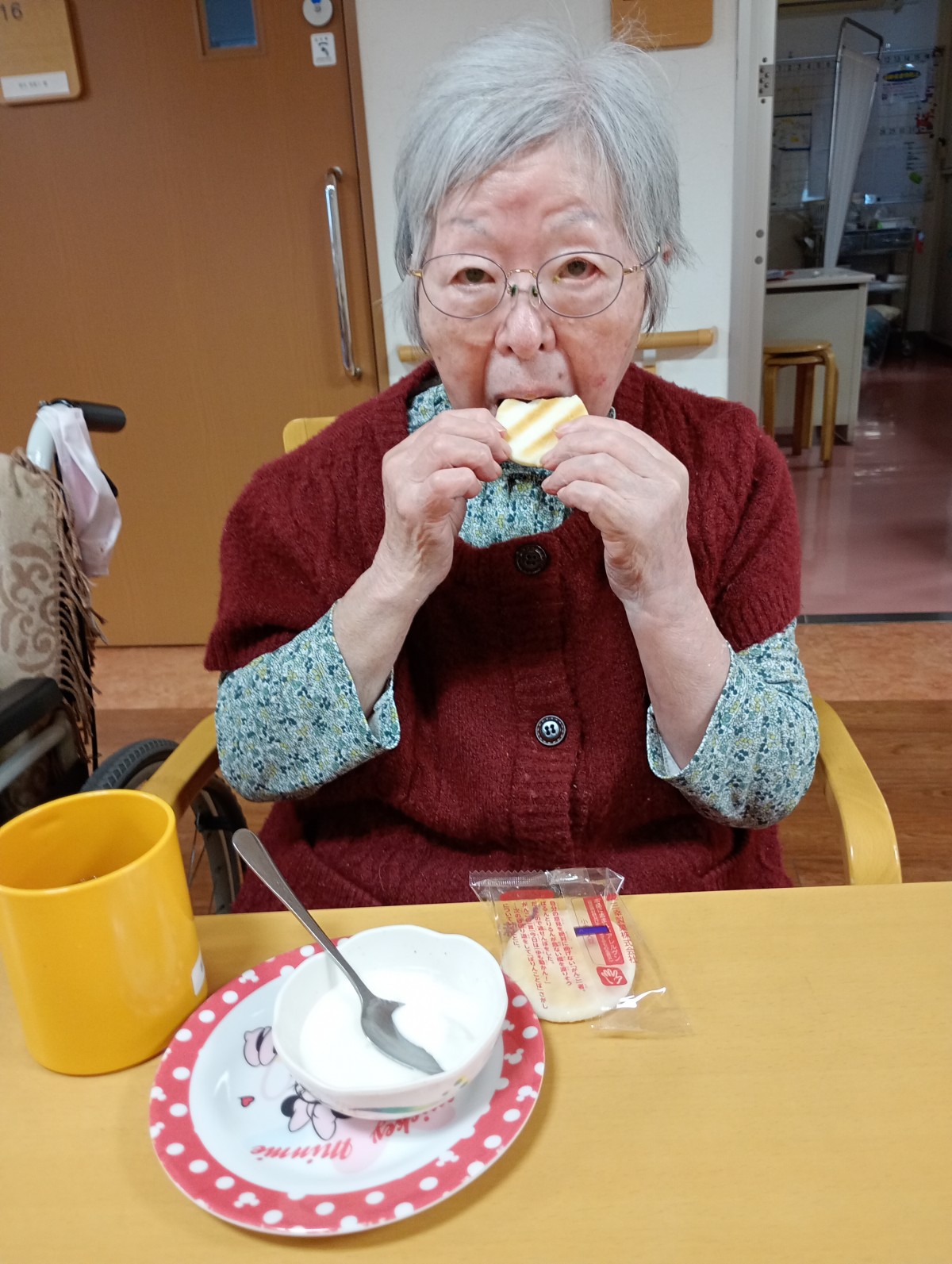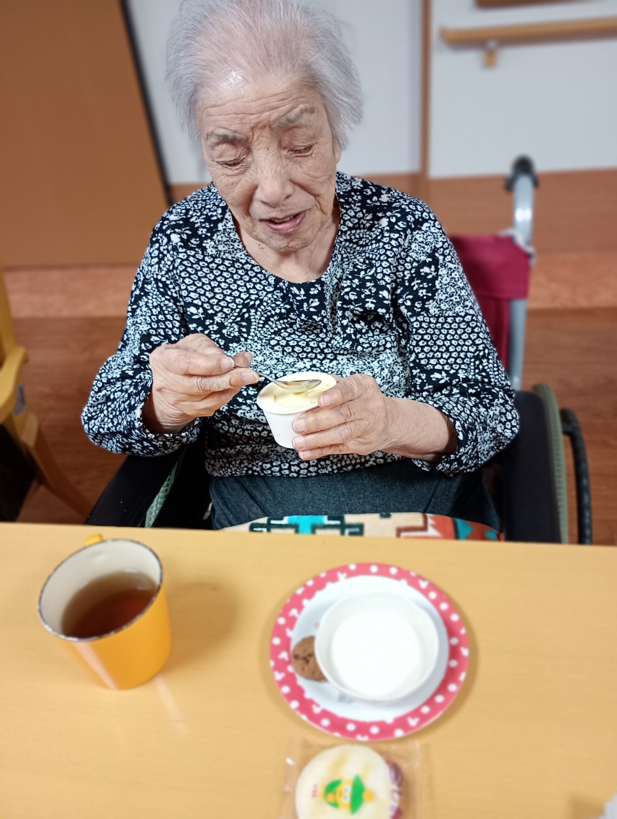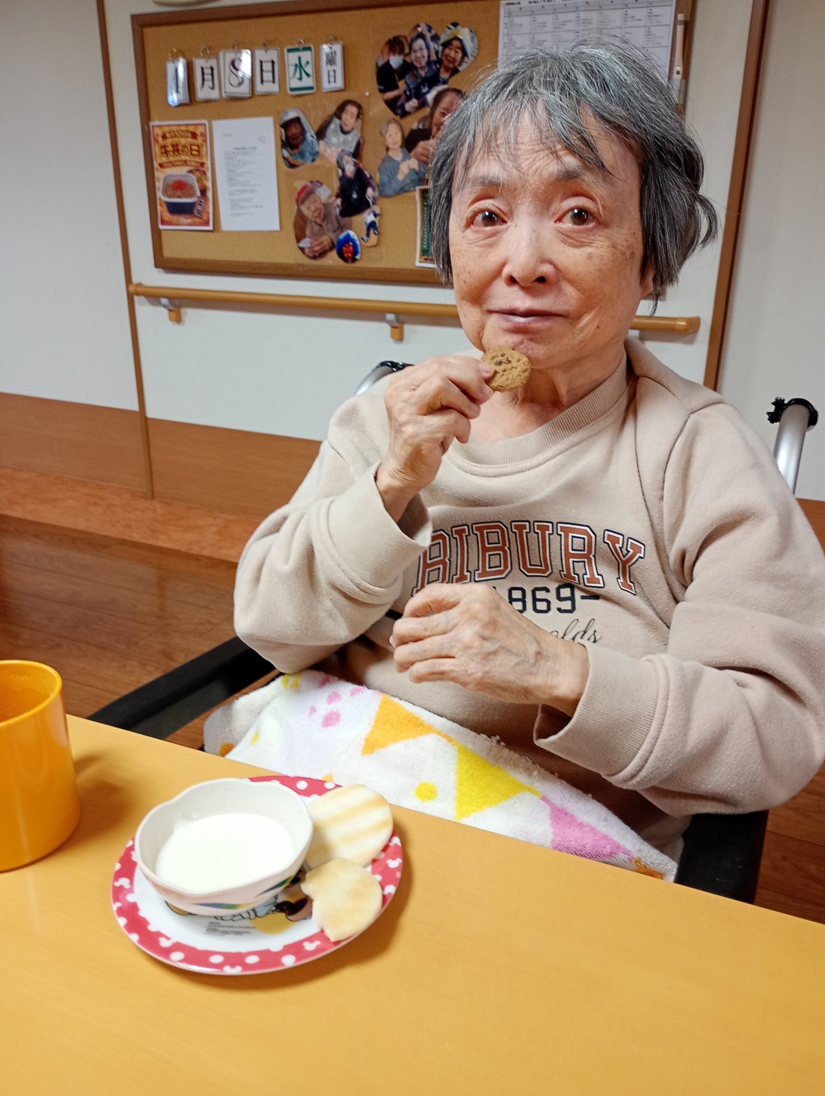 今日のおやつは、アイスにおせんべい、それにクッキー!