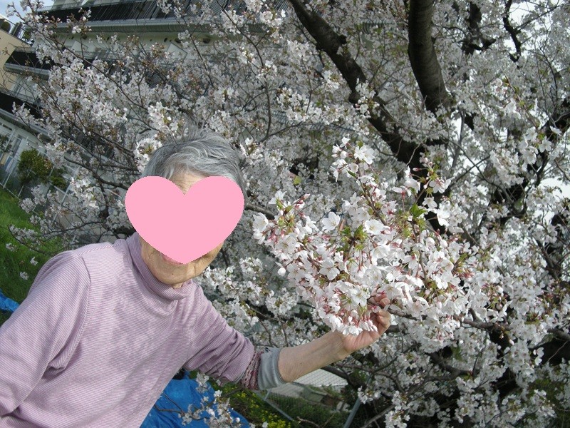 多摩川の土手は、満開の桜が咲き誇り、「綺麗だね。」と皆さま笑顔に。