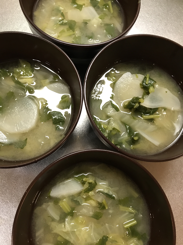 収穫したお野菜を切って頂き、その日のお味噌汁として提供しました(*^^*)