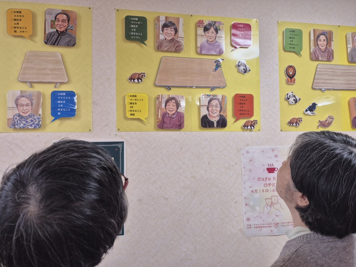 食堂中心部の壁に、利用者様紹介MAPが出来ました。
