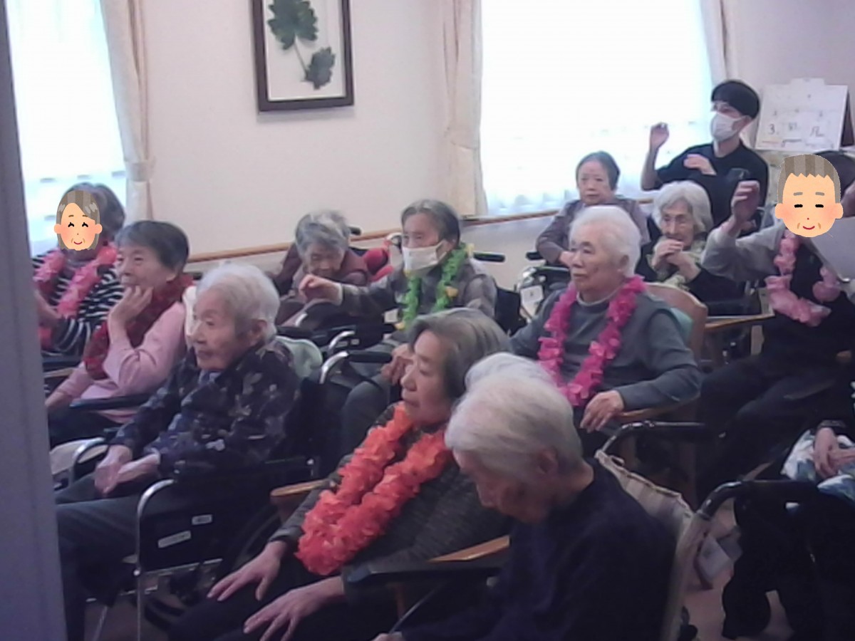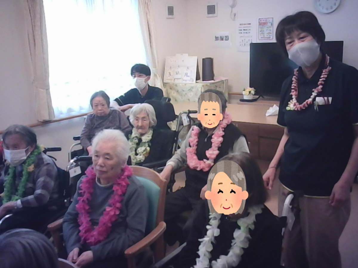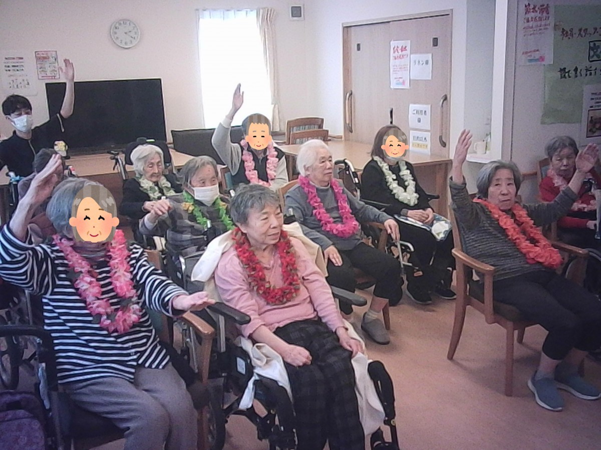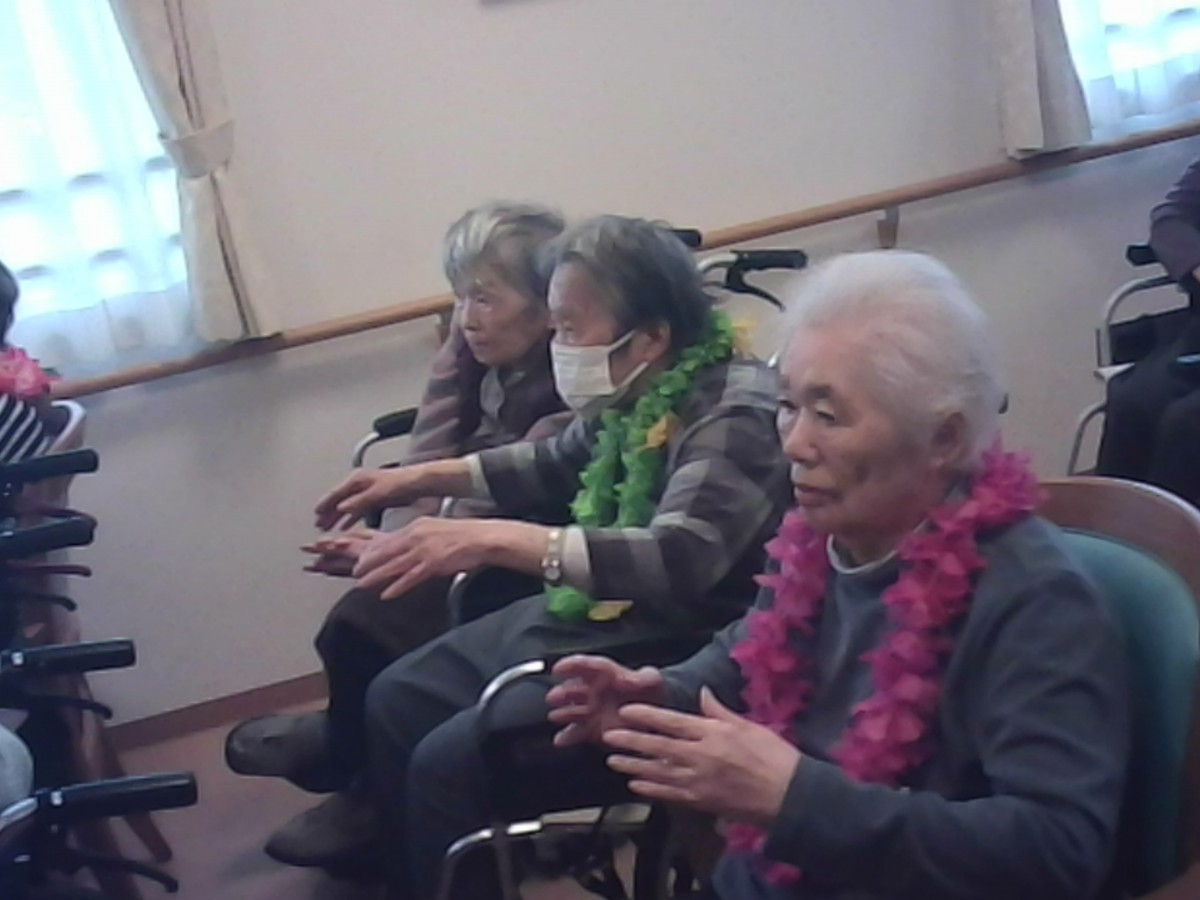 先日ボランティアの皆さんにお越しいただき、フラダンスを披露していただきました。