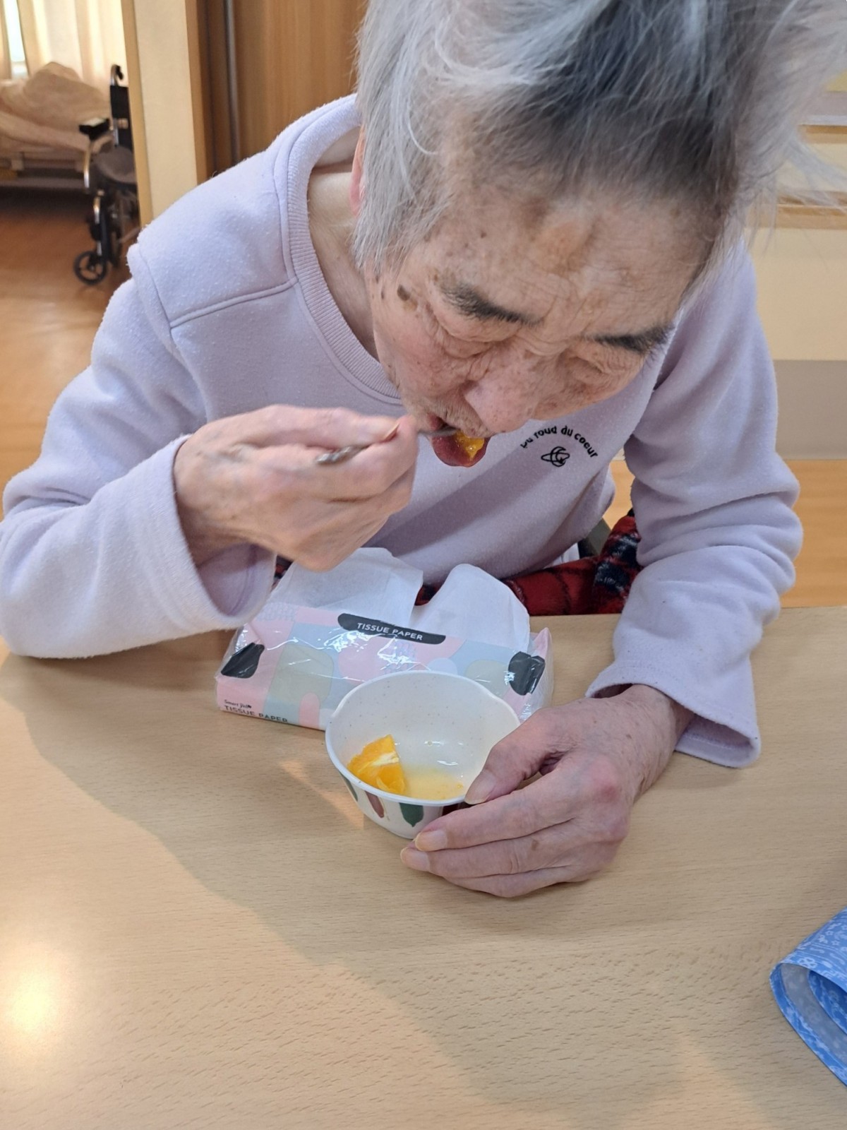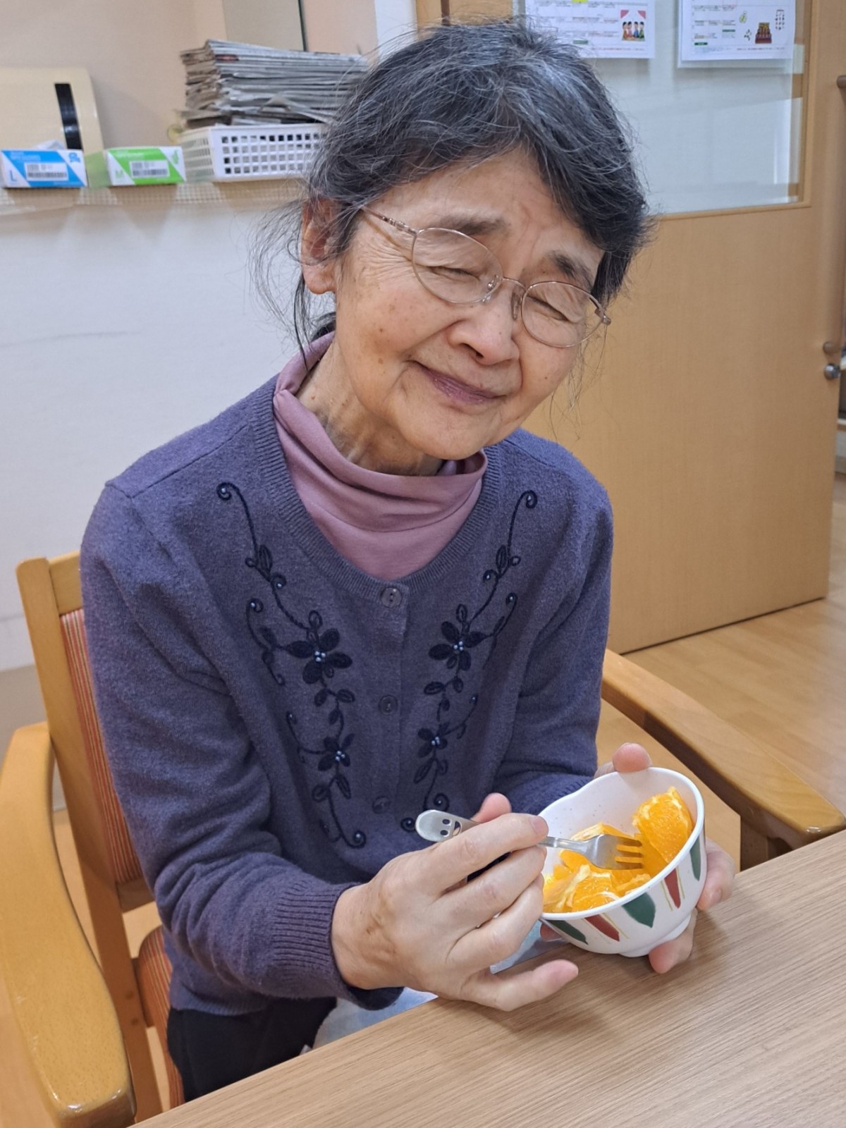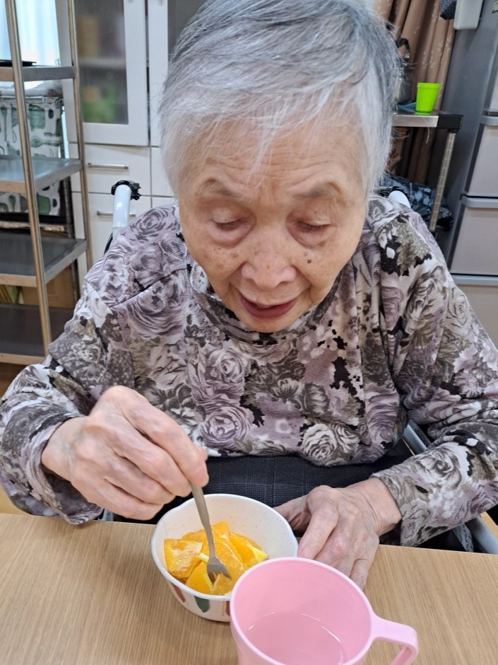 グループホームみんなの家・中野鷺宮で頂いたフルーツ召し上がる