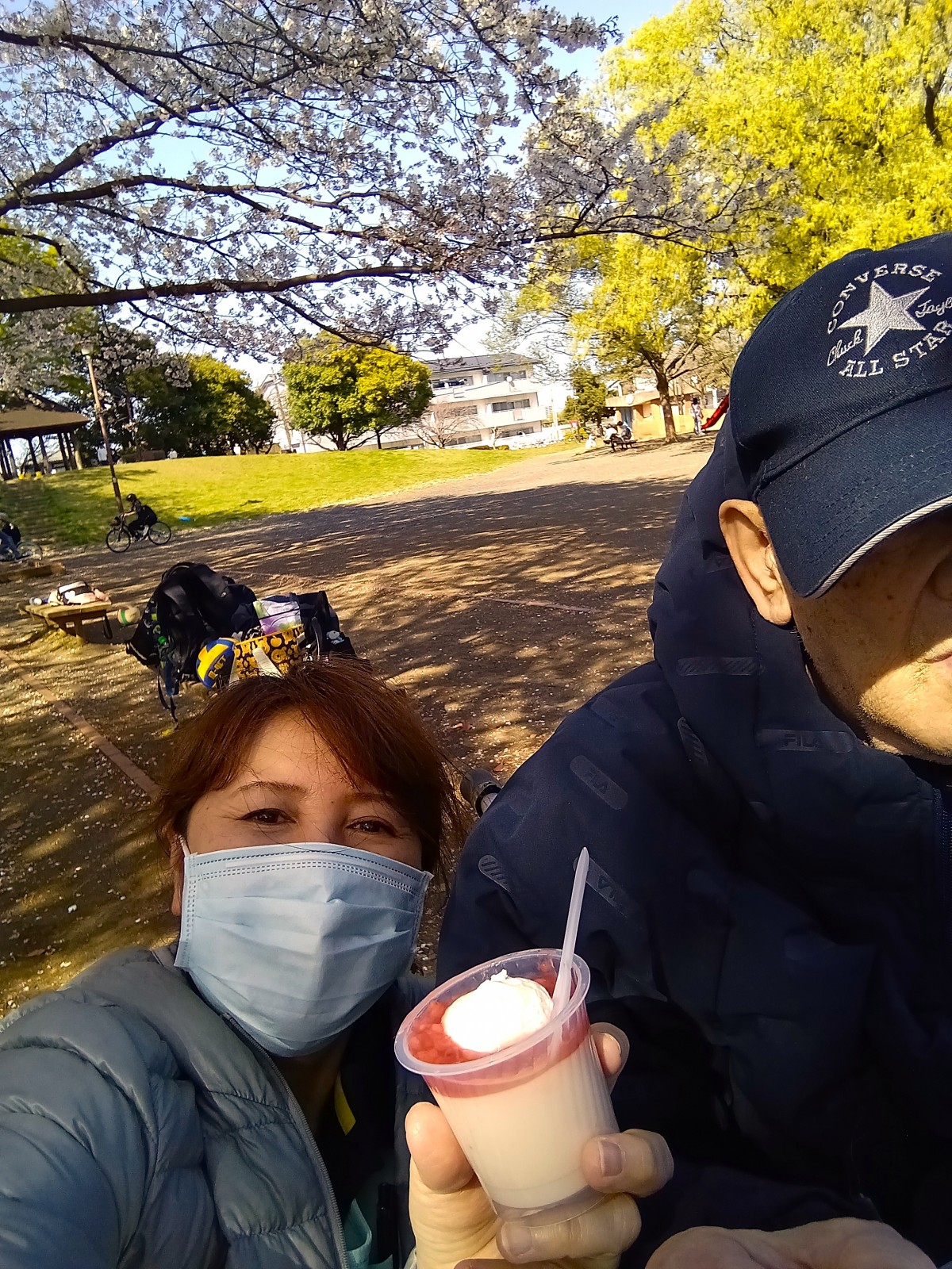 この後皆さんで桜を見ながらプリンを食べました♪