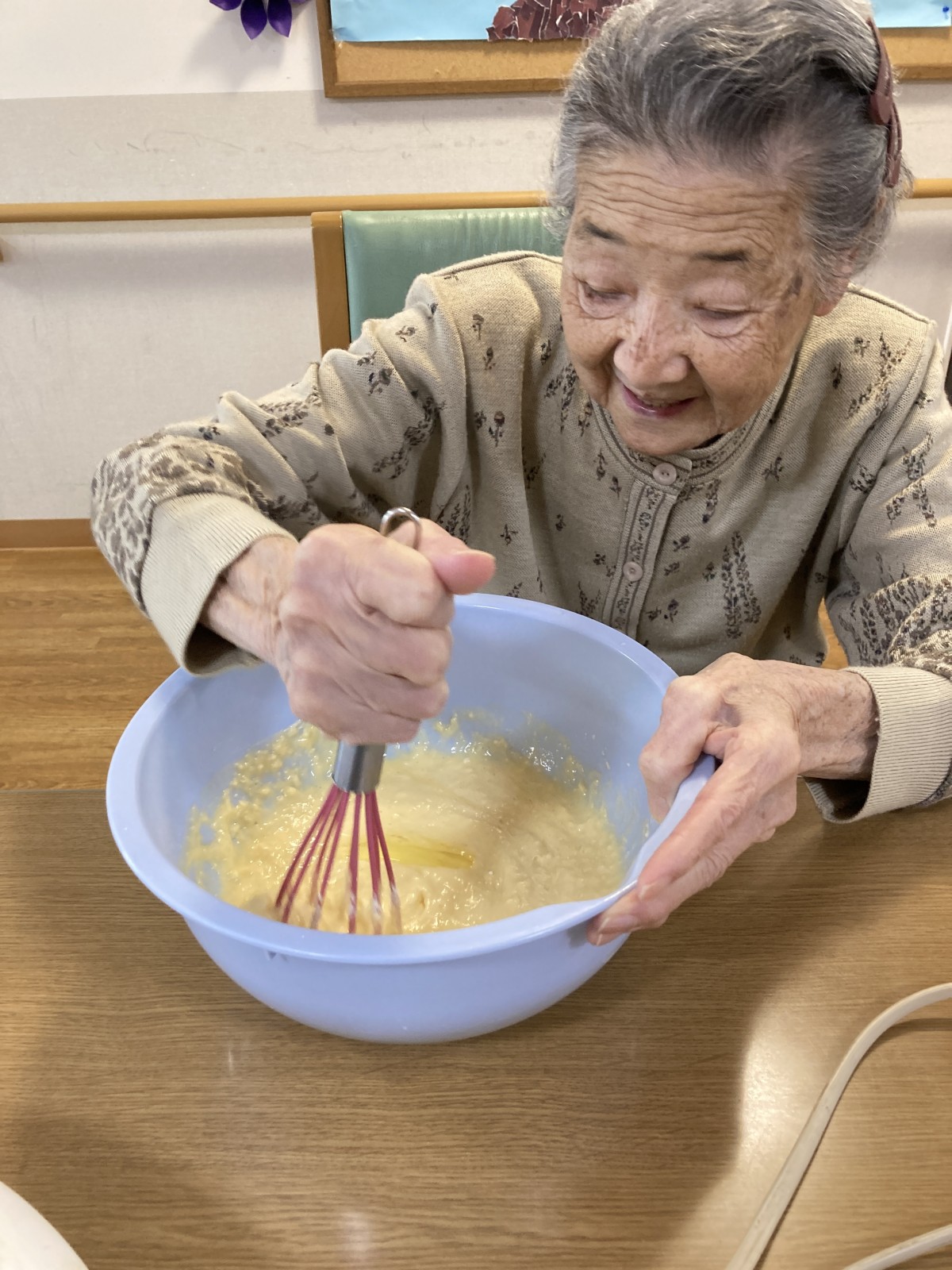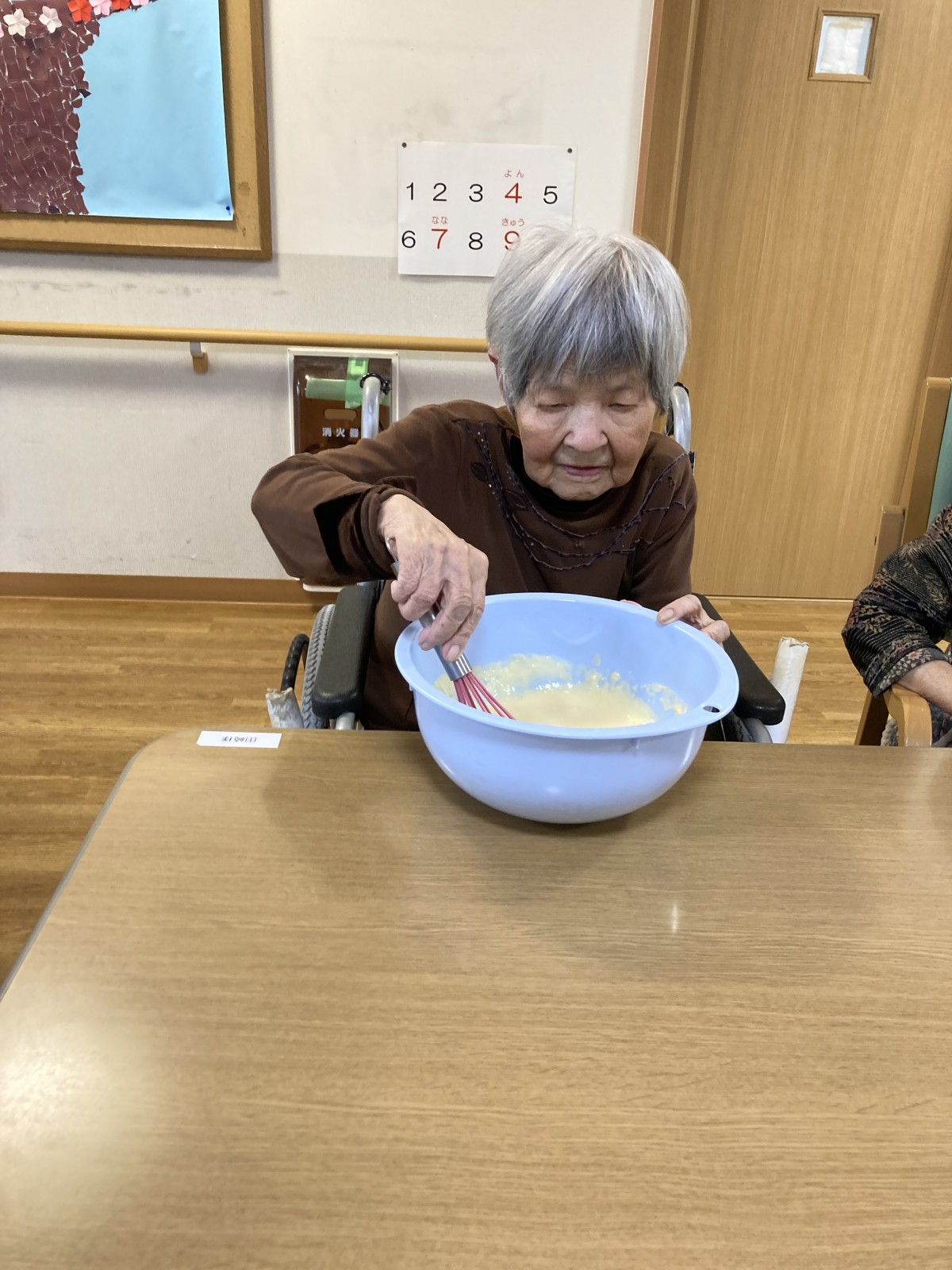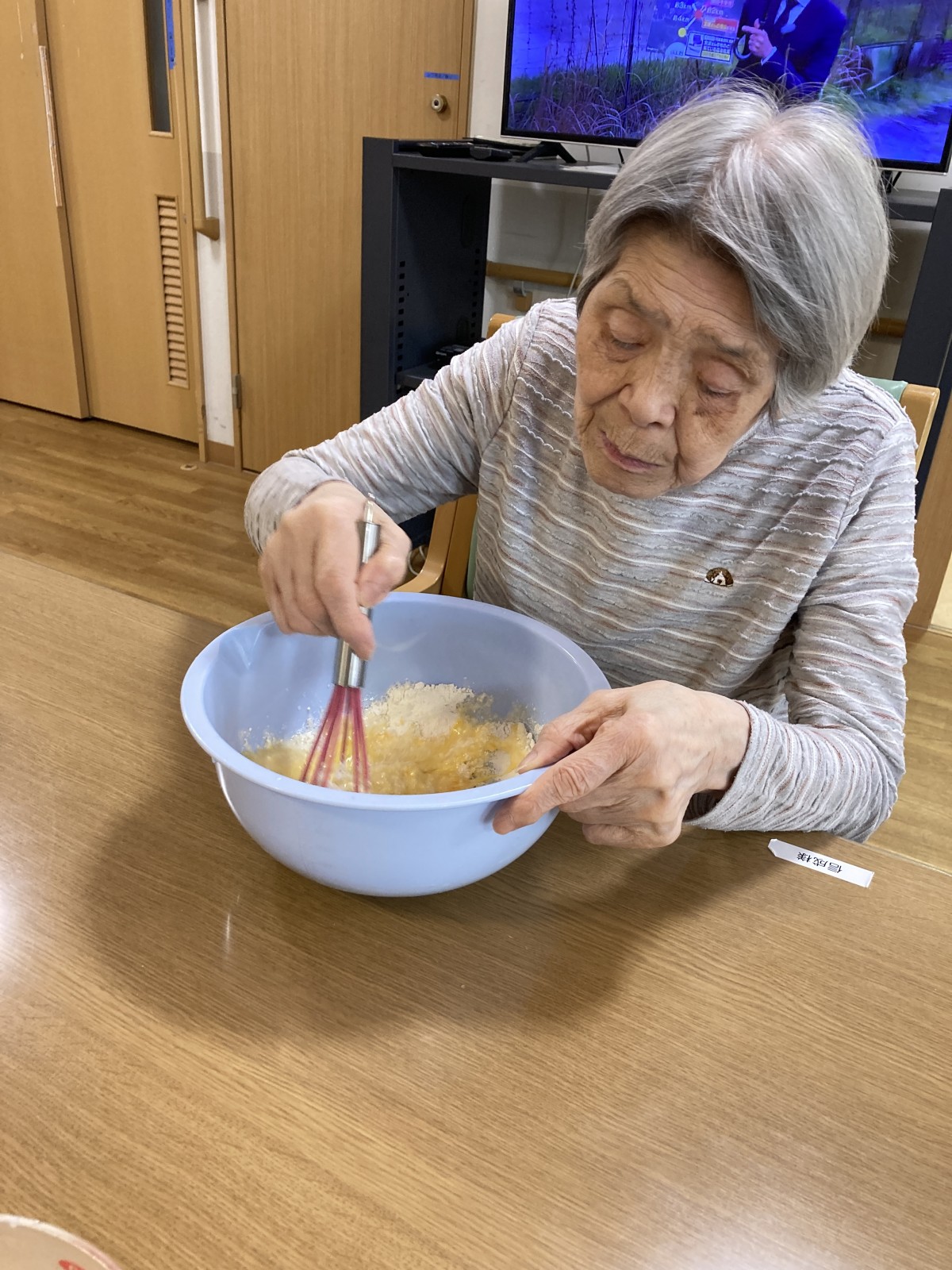 ホットケーキの粉・卵・牛乳を入れて混ぜていきます。