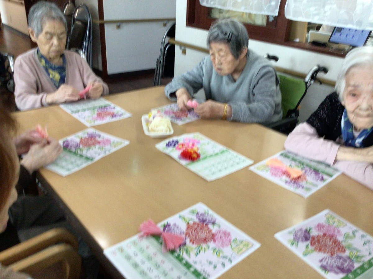 本日のオレンジカフェはちぎり絵教室です!!普段と違い地域の方も参加されています(∩´∀`)∩