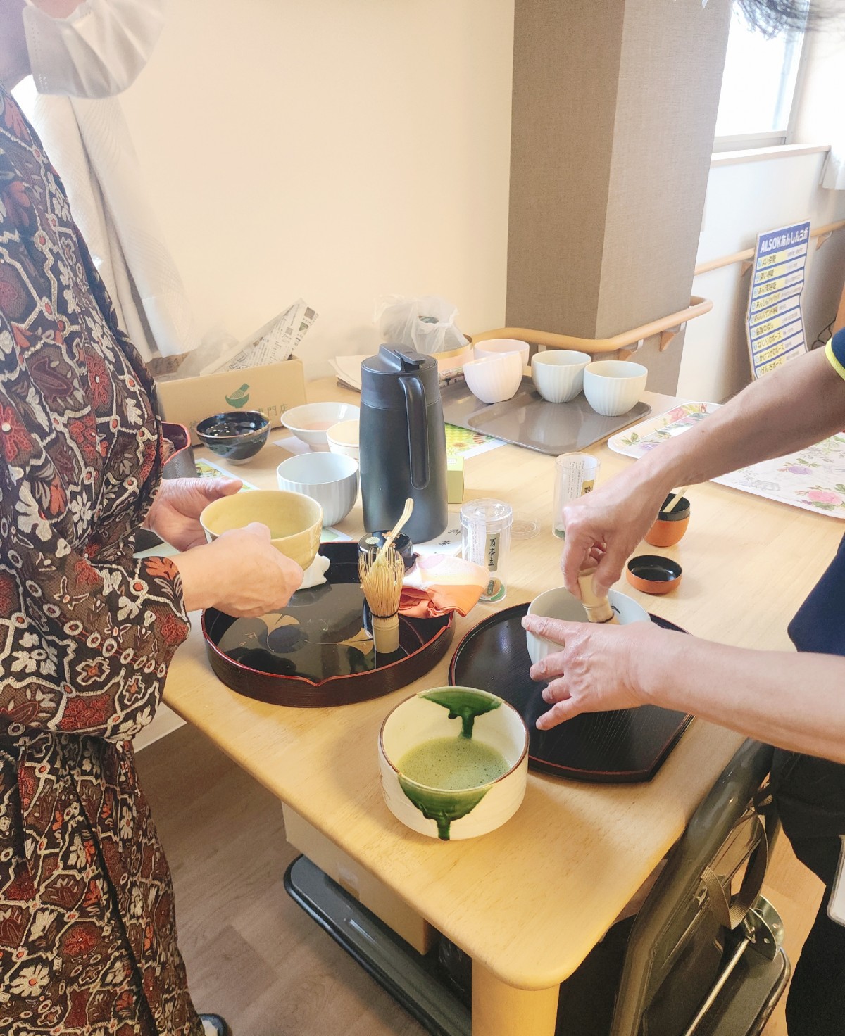 茶道の経験がある我らがケアマネジャーとスタッフが心をこめてお茶を点てました。