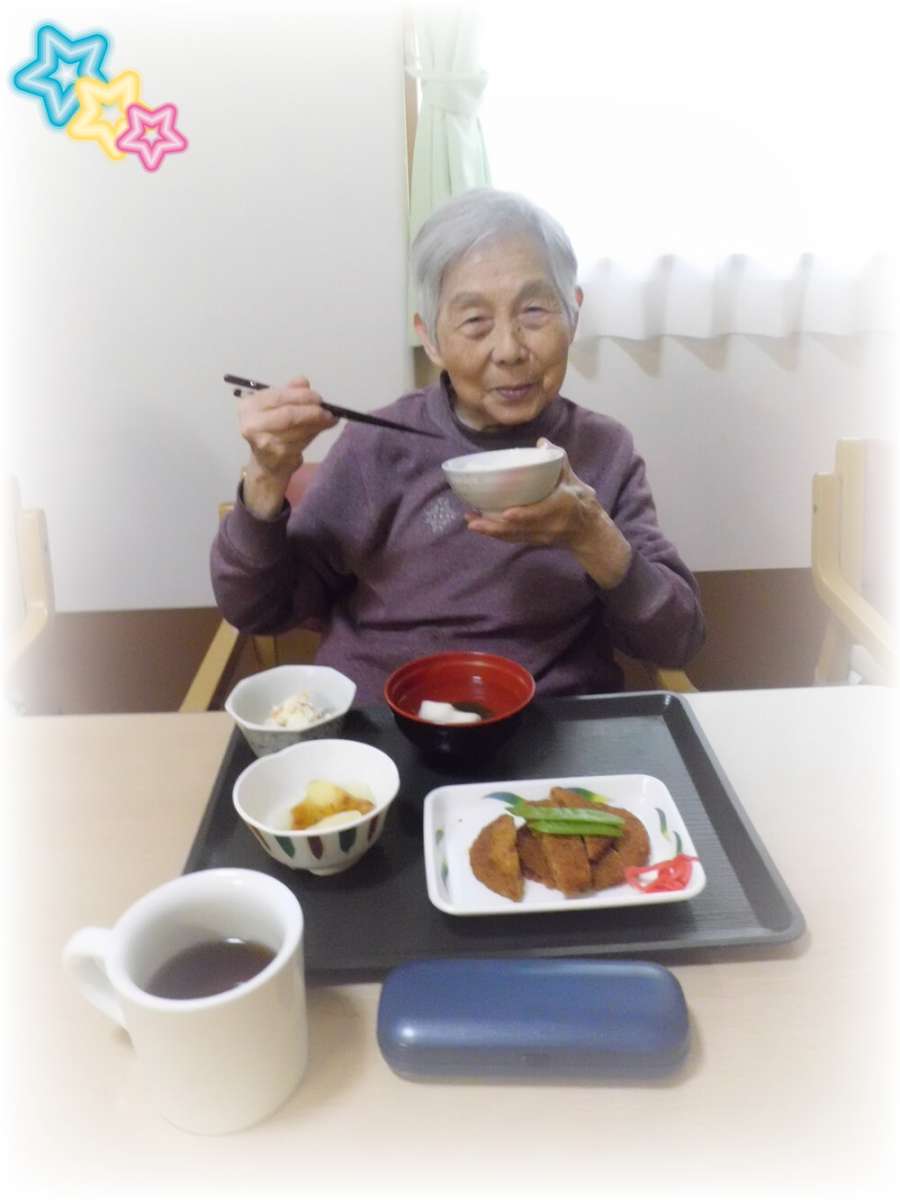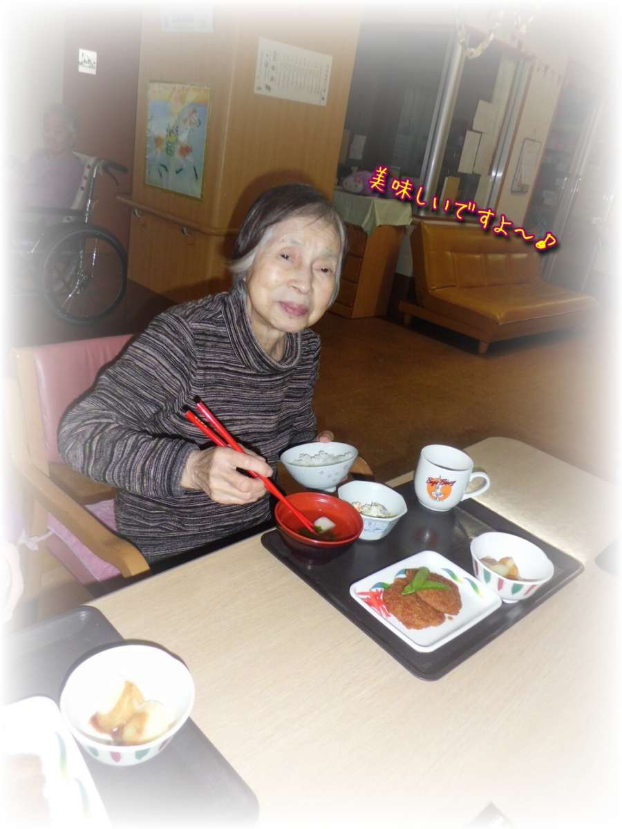 大きなカツを見て、とっても嬉しそうです(*^_^*)