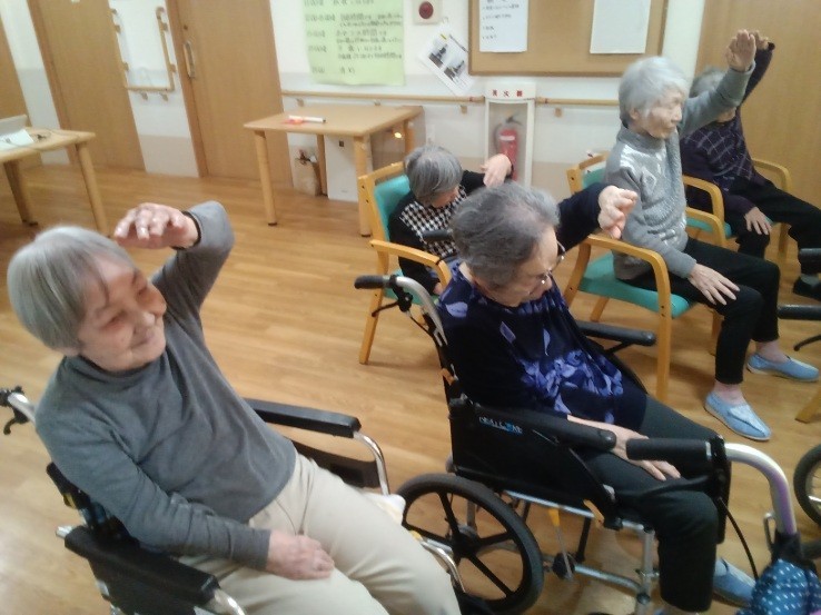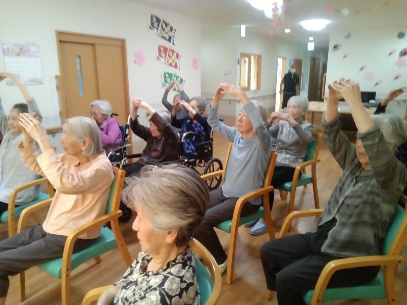 こんにちは GHみんなの家川崎新百合ヶ丘です 先日リモートで体操教室がありました 皆様テレビの中の先生の言葉を皆様聞き逃すまいと真剣でした