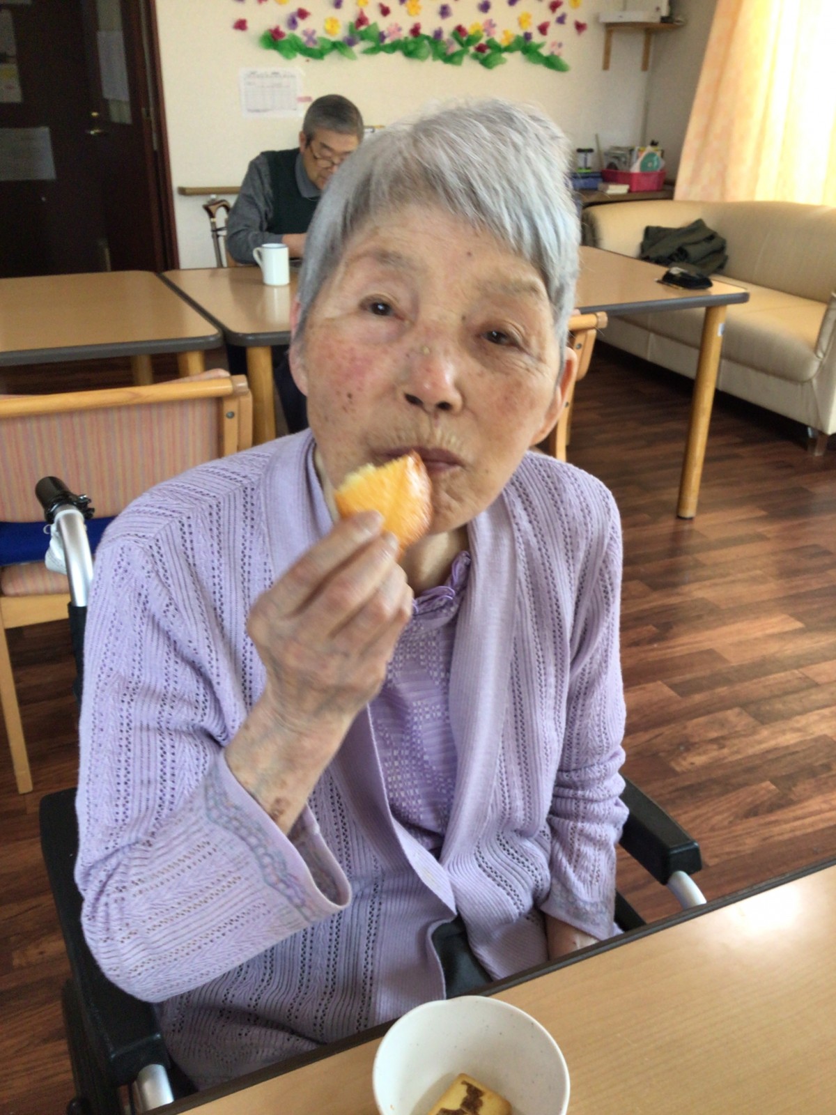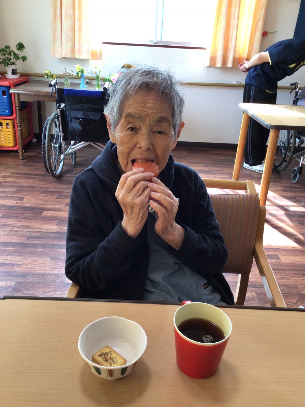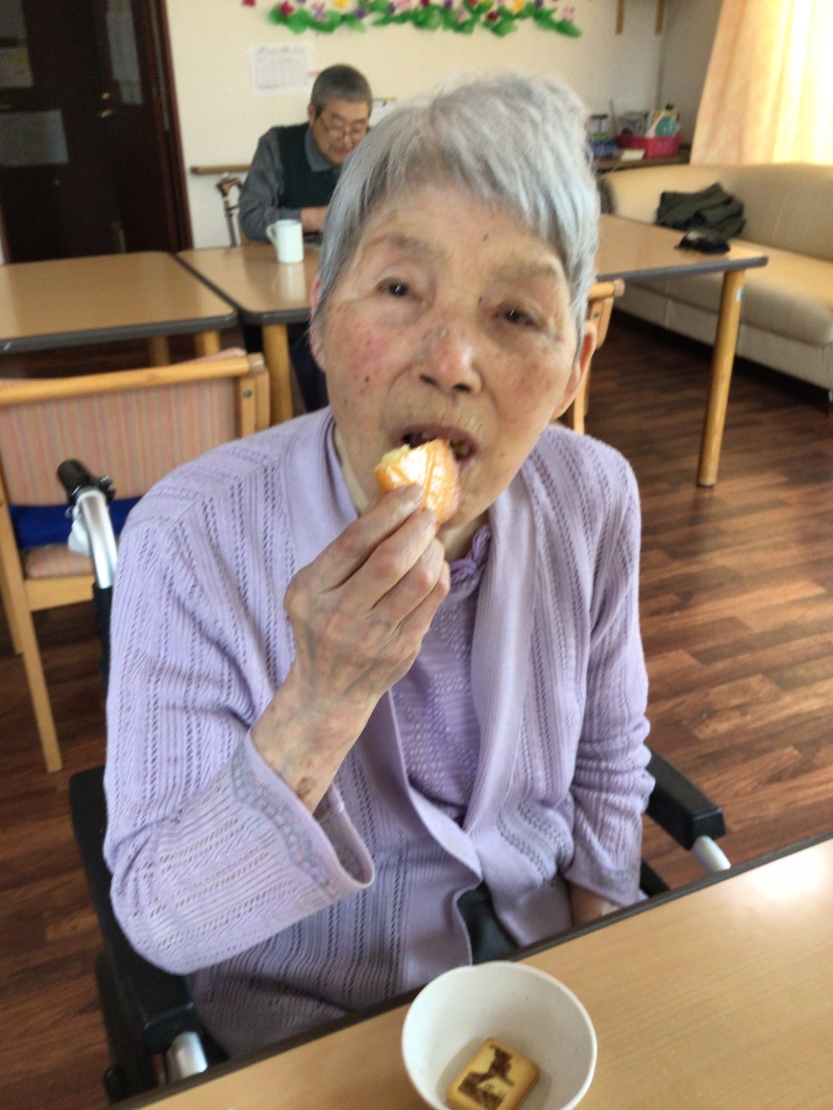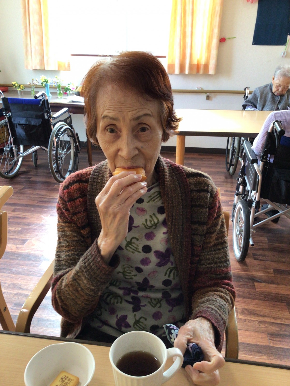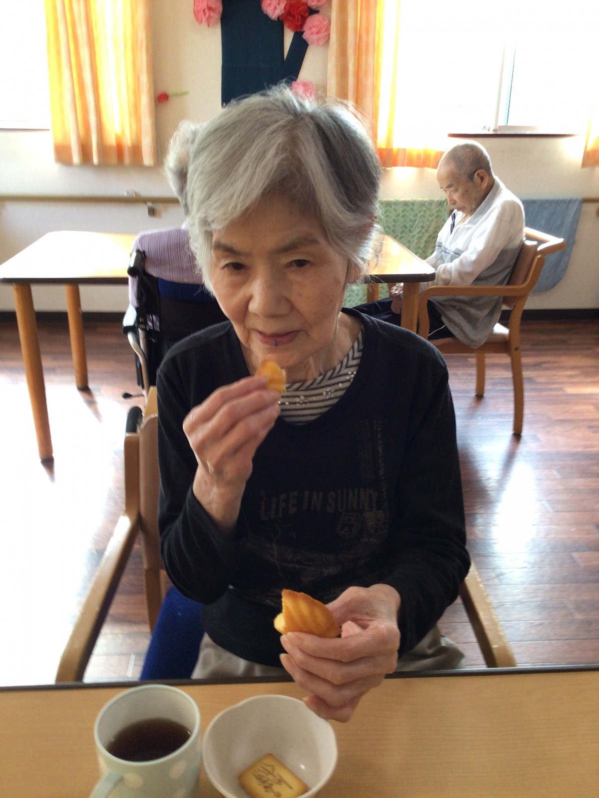 今回は、ご利用者様のご家族様からいただいたマドレーヌを2階のご利用者様のみなさんでいただきました!