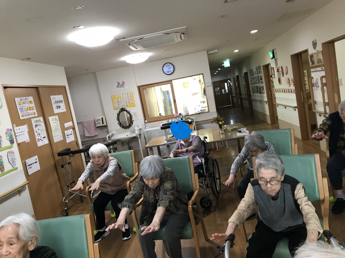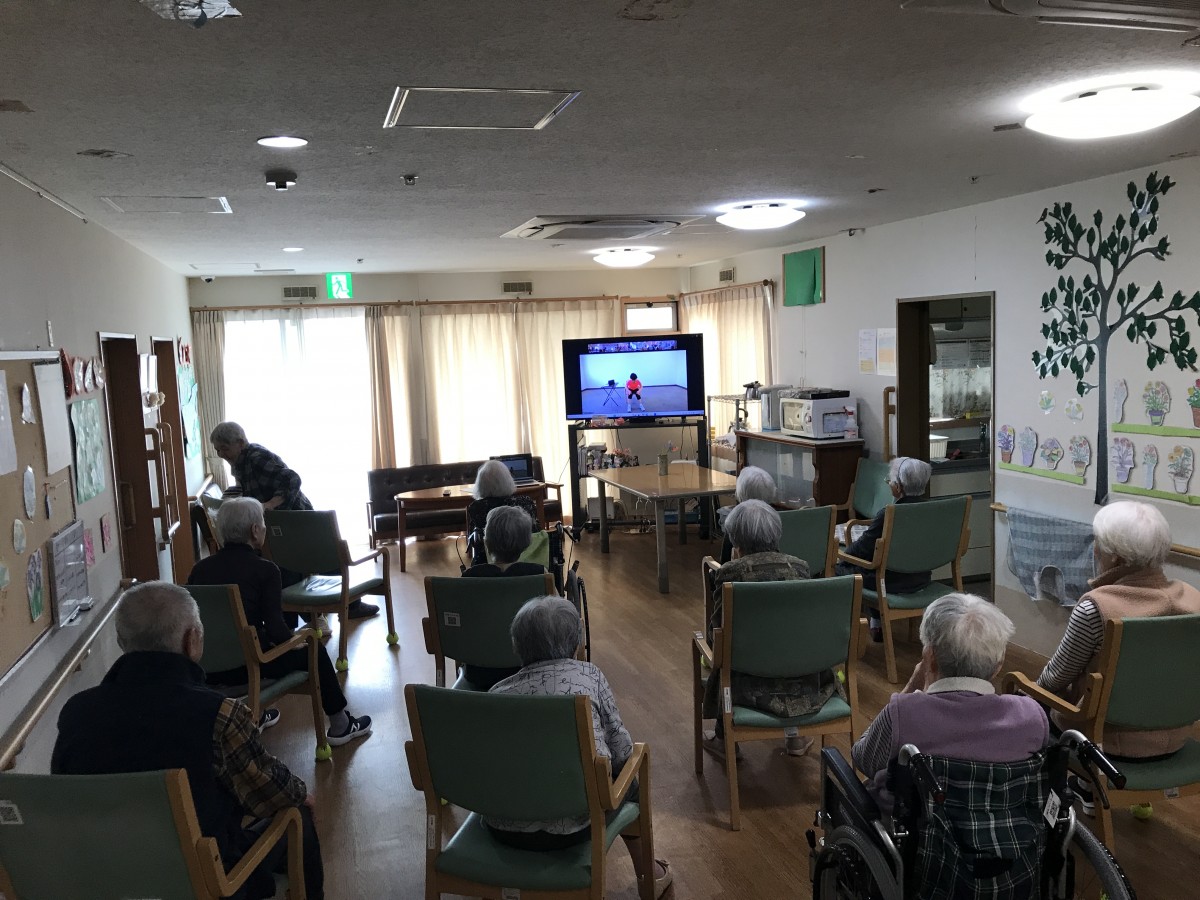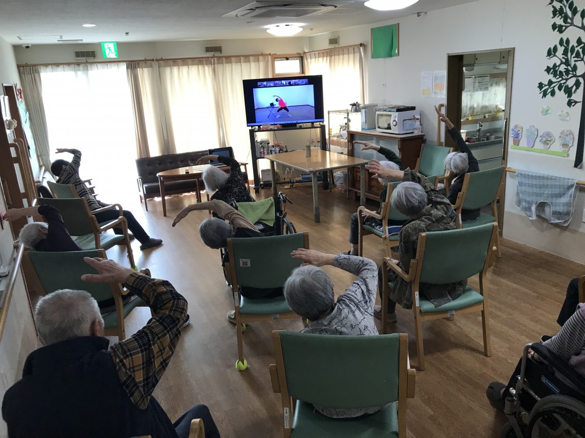 健康促進プログラムの中で当ホームが好きな先生考案の体操、毎朝DVDを観ながらやっています。