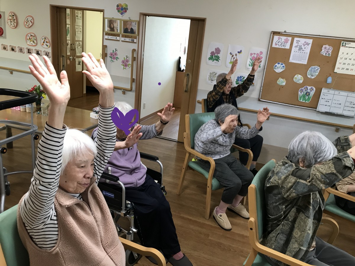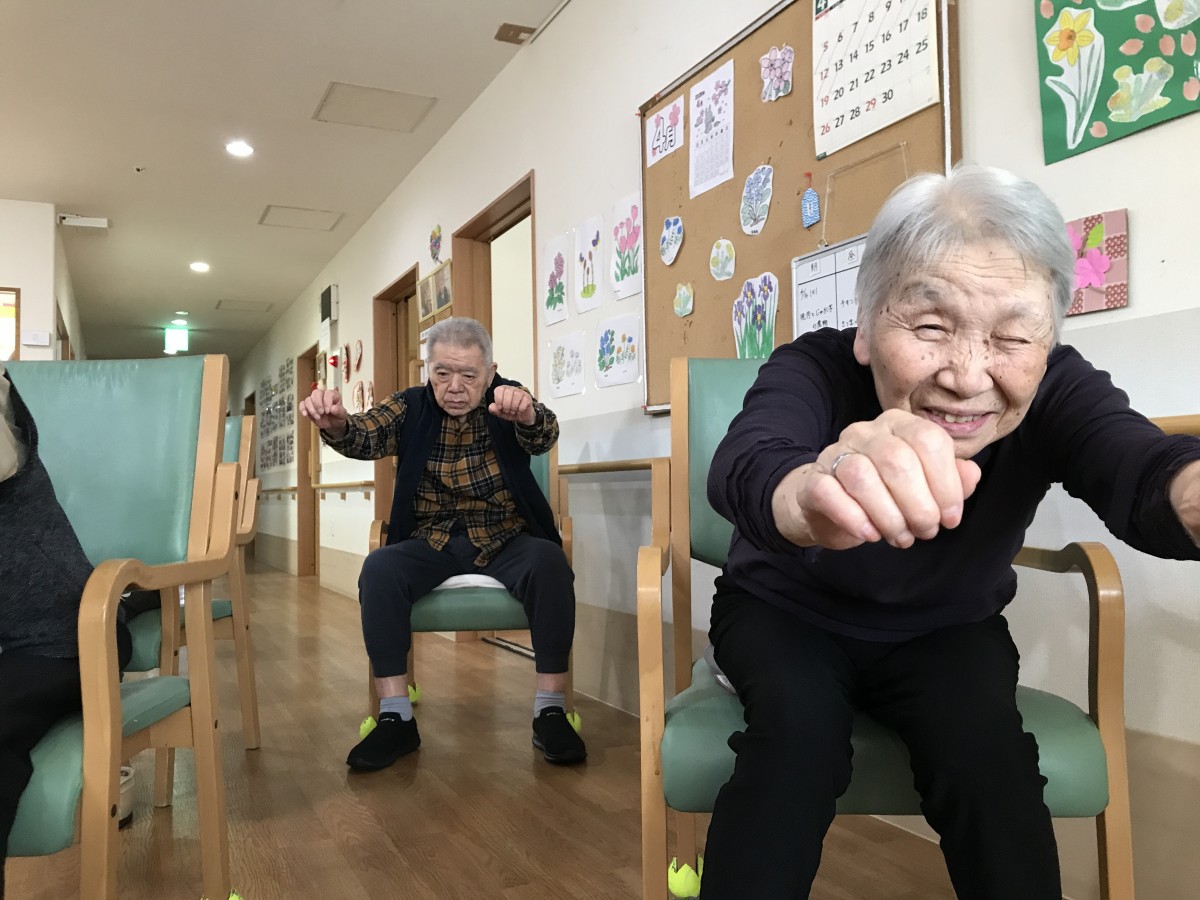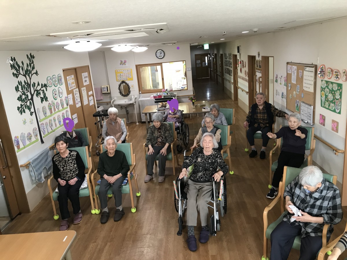 健康促進プログラムの中で当ホームが好きな先生考案の体操、毎朝DVDを観ながらやっています。