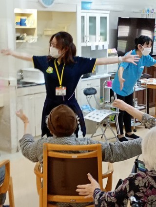 先生とコミュニケーションを取りながら準備体操もバッチリです! それでは、体操のご様子をダイジェストでご覧ください~