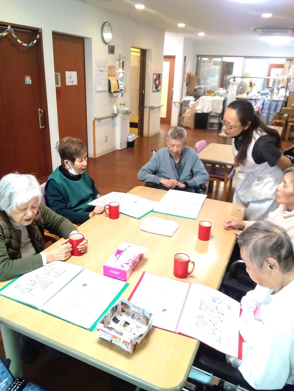 10:00のお茶の前に 歌っています(^ω^)