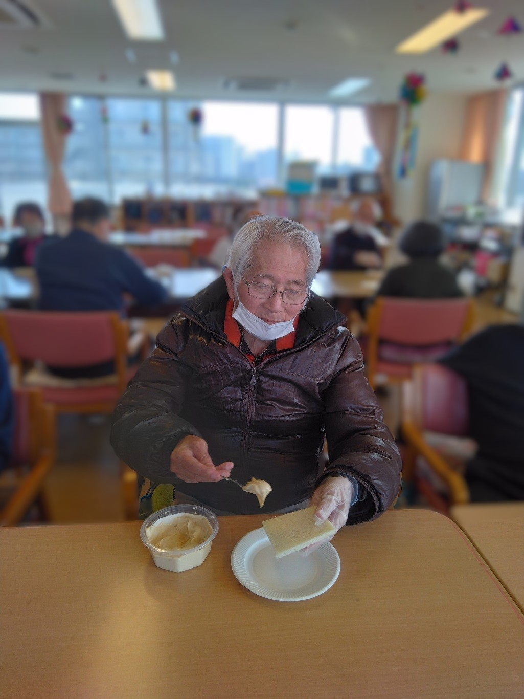 本来は違うサンドウィッチを考えていたそうですが、私(松澤)が間違えてレクカレンダーに記載してしまったためピーナッツバターサンドになってしまいました(笑)
