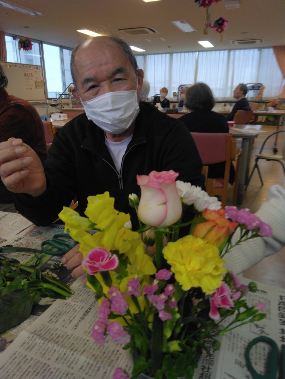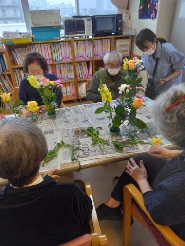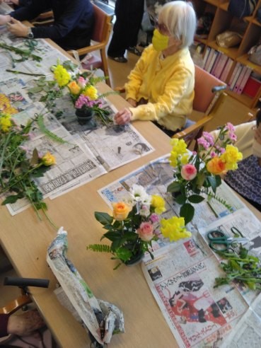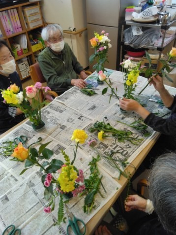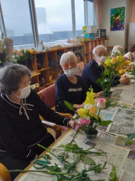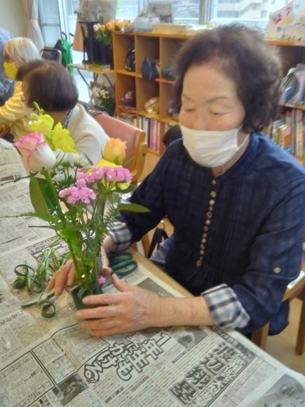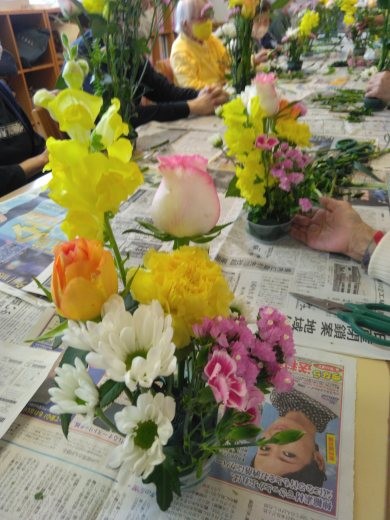 こんにちは、春色の花があちこちで咲き始めました!遊・新横浜では、春のお花のアレンジメントを今月も先生をお招きして行いました♡