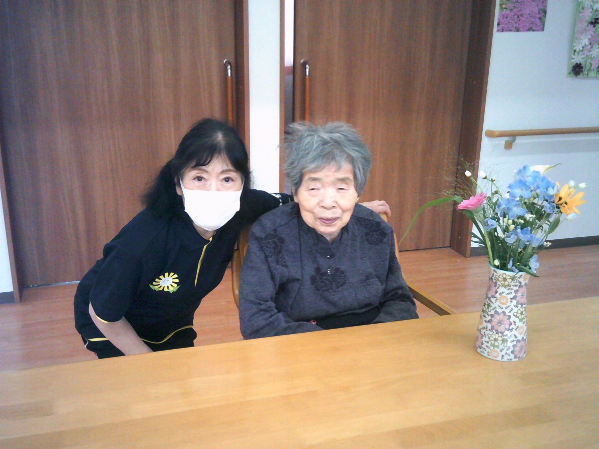 今日はご家族様が面会に来られました。 お花とお菓子をお持ち下さりました。