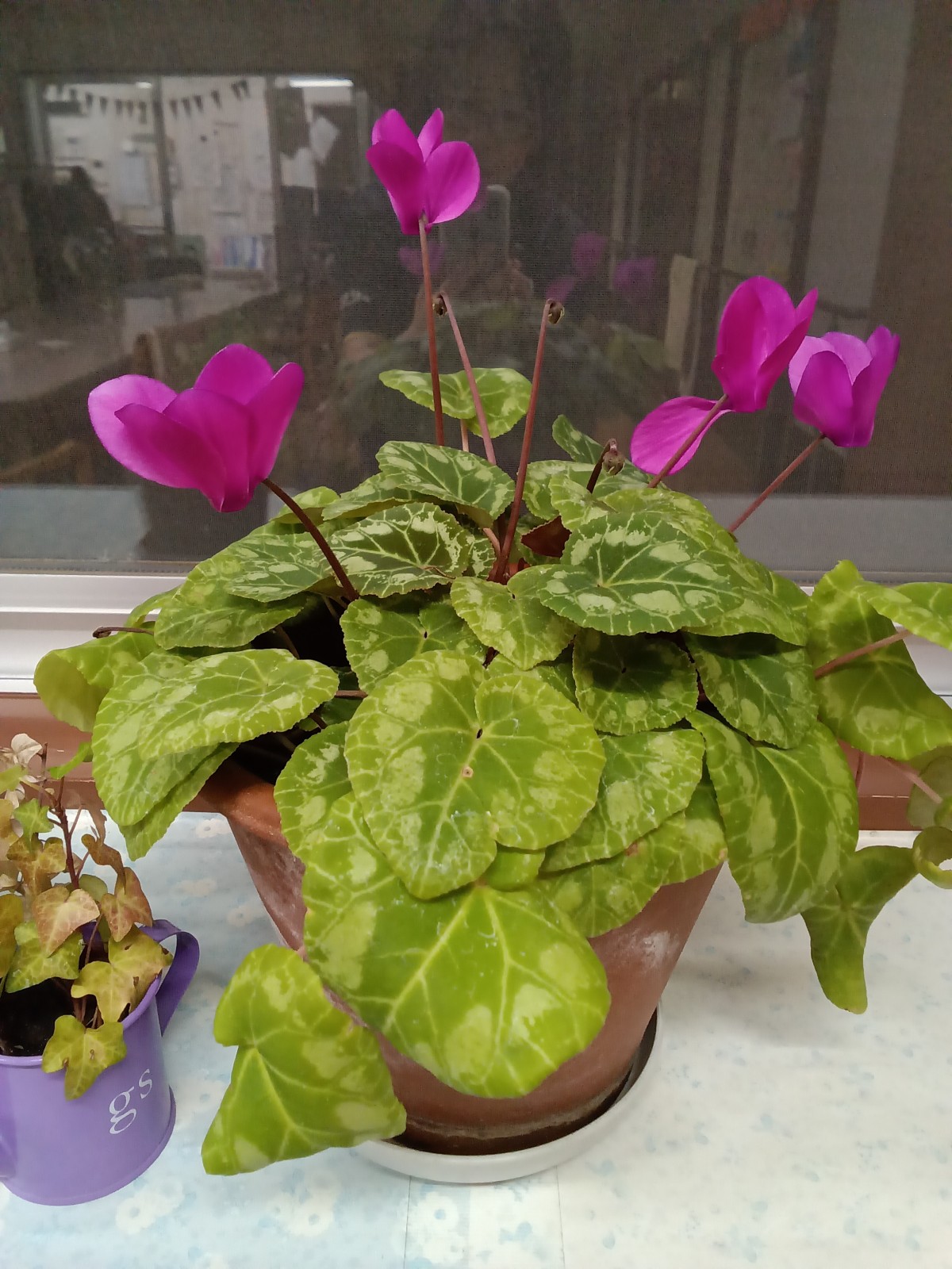 毎日大切に水やりをしているシクラメンとランの花が見事に咲き、とても喜ばれています。