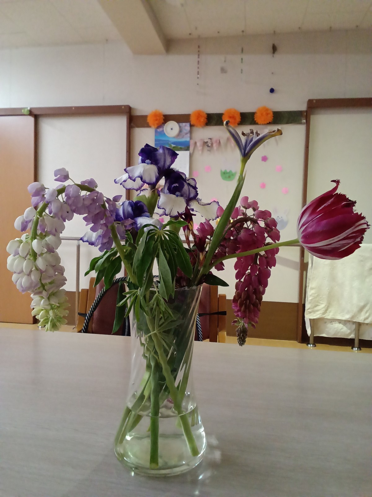 施設の敷地でで咲いているお花を摘んで活けました(*'▽')ノ