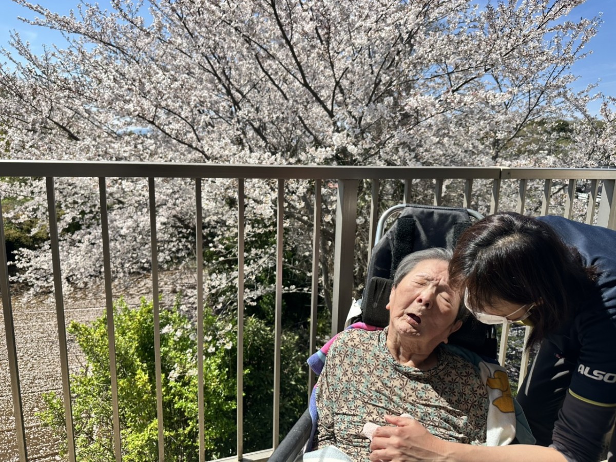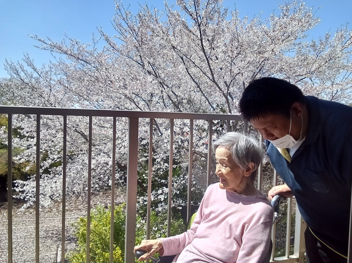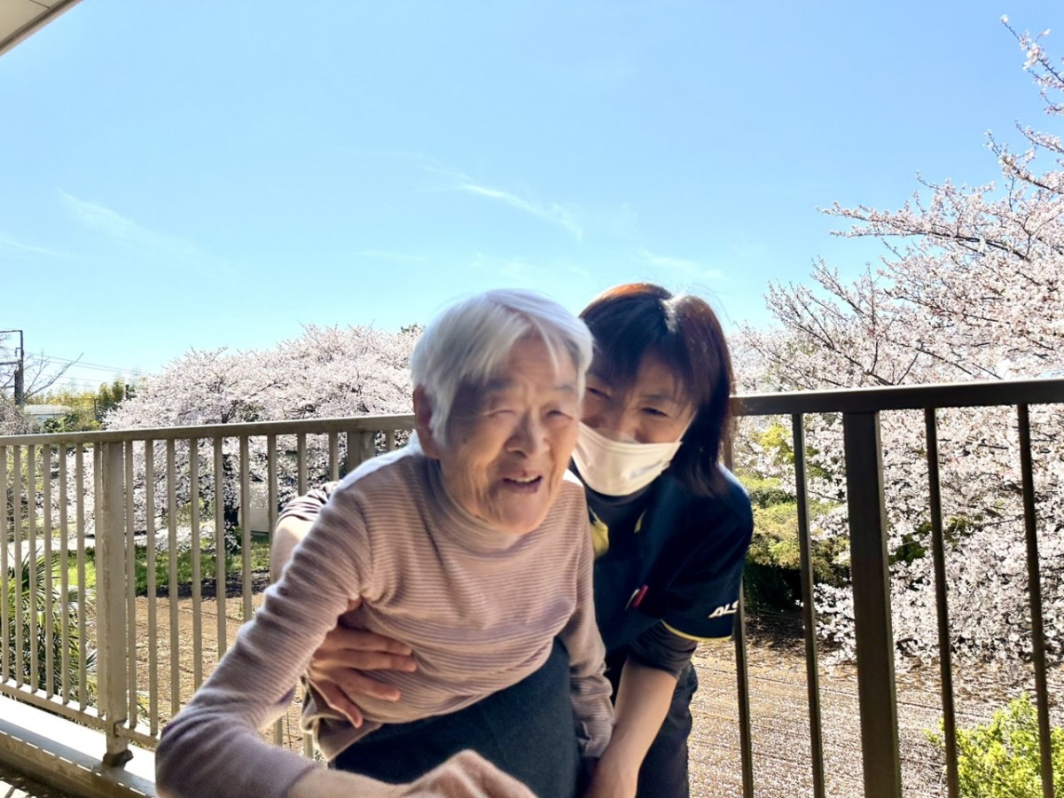 満開の桜の花とご利用者様の笑顔の写真をご紹介いたします\(^o^)/