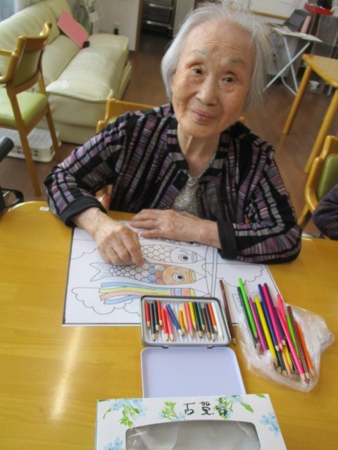 今日は鯉のぼりの塗り絵を行いました。 塗られているご様子をお知らせいたします。