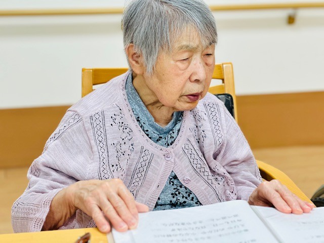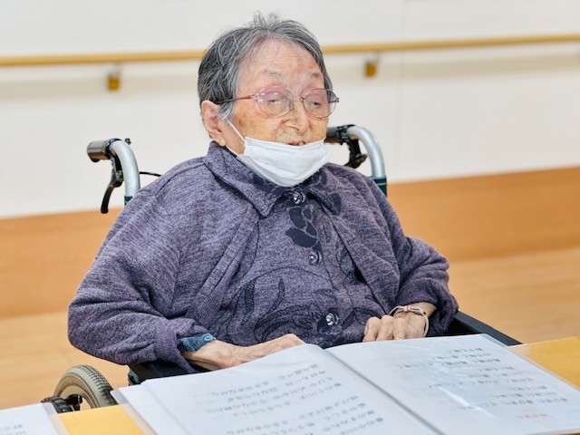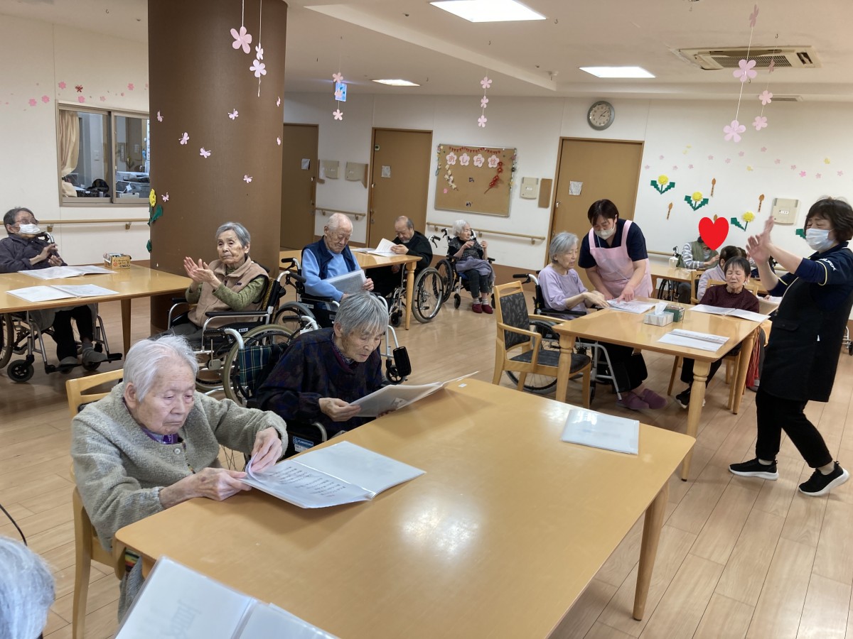 先日、1階のご利用者の皆様で春の歌の合唱をしました!