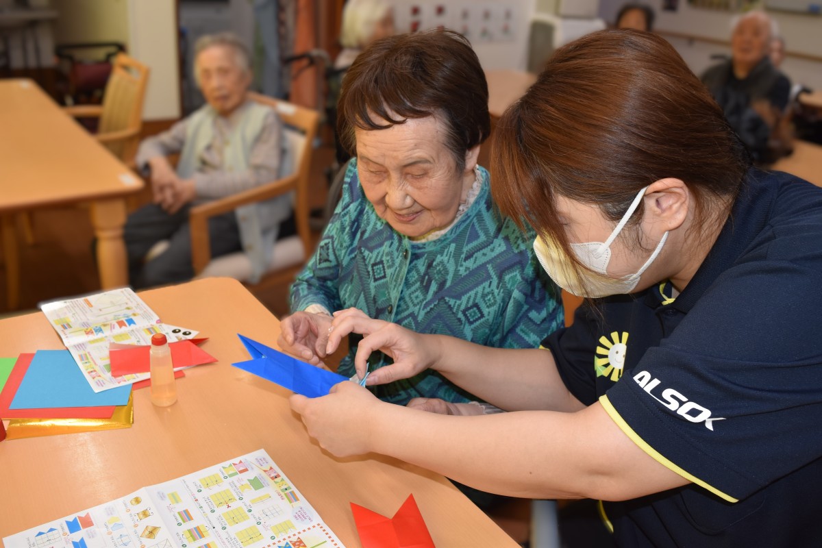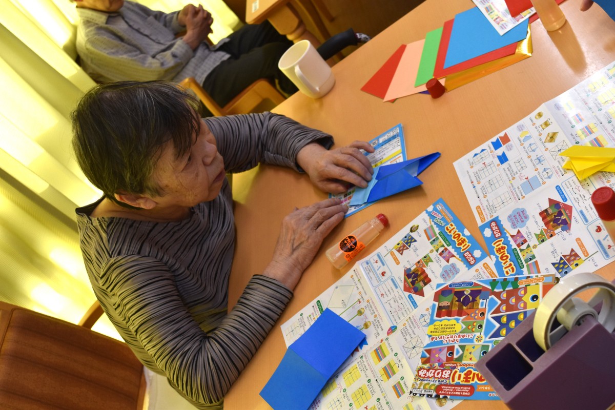 5月の「こいのぼり作り」を折り紙で皆様で作成していく中で
