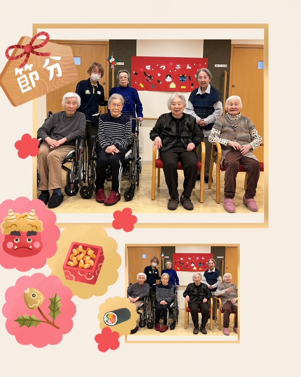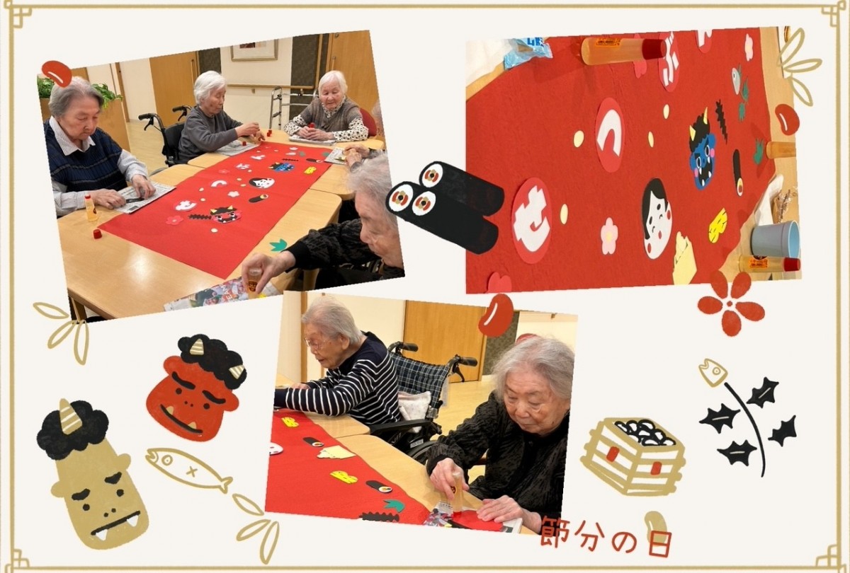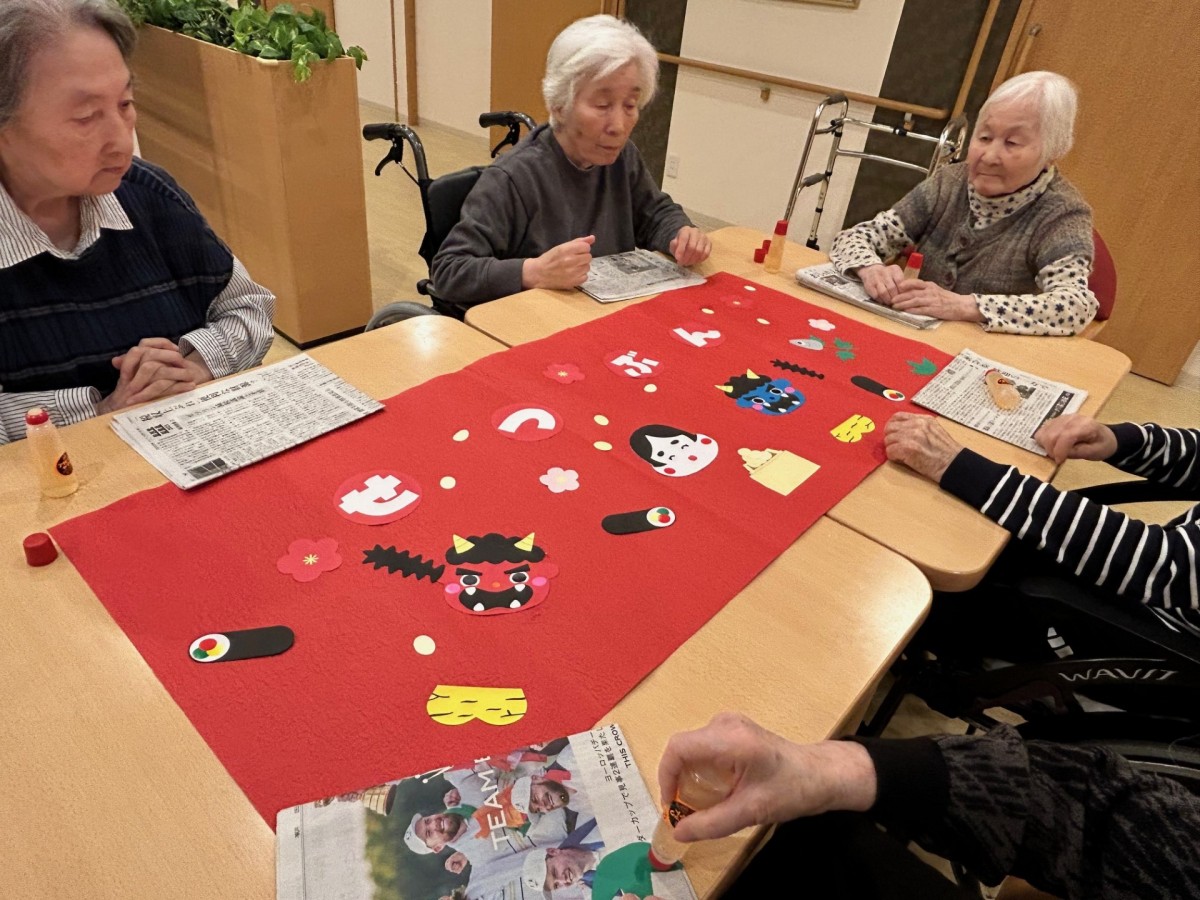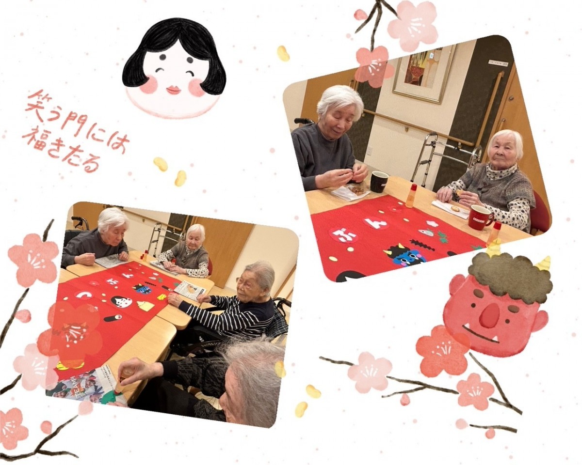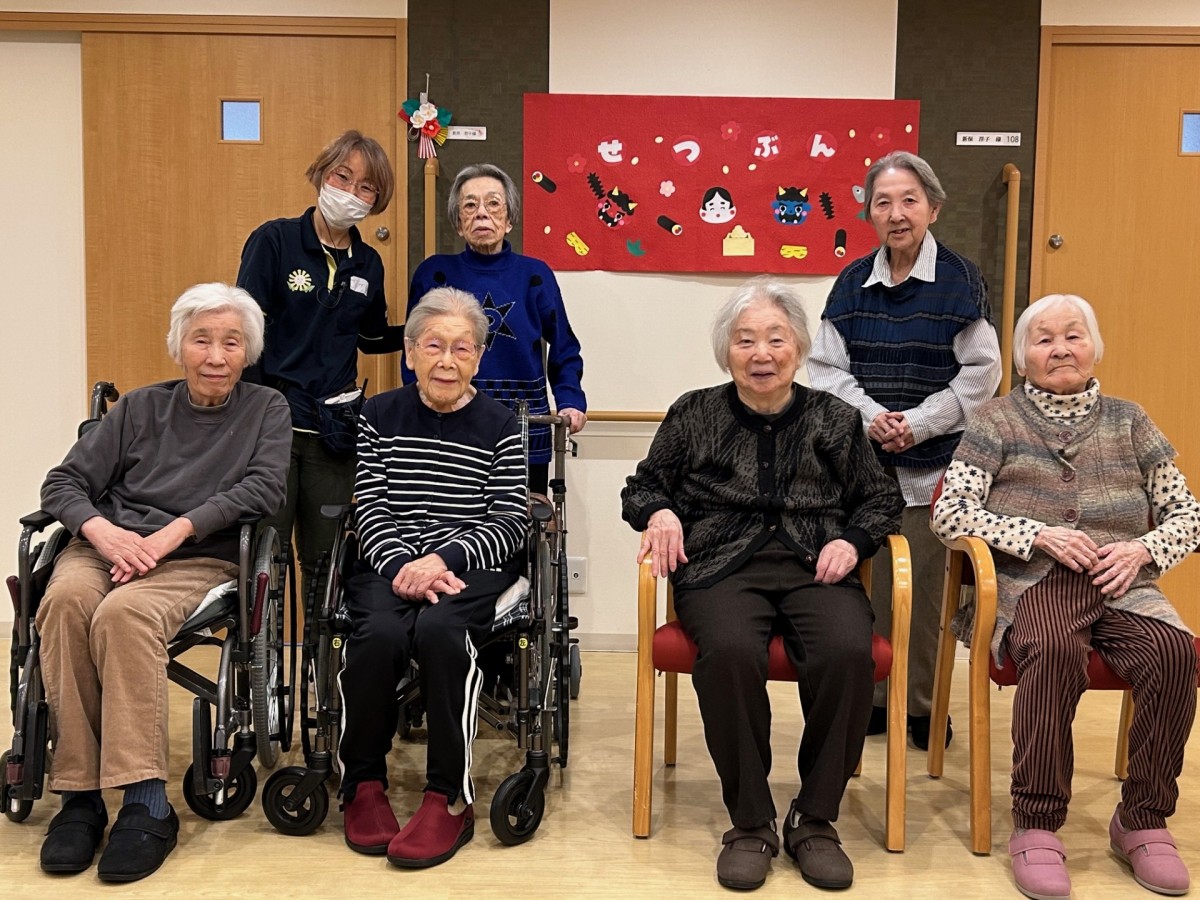 アミカの郷ちとせでは、毎年節分の行事を行い、入居者様と一緒に季節の移り変わりを感じていただいています。