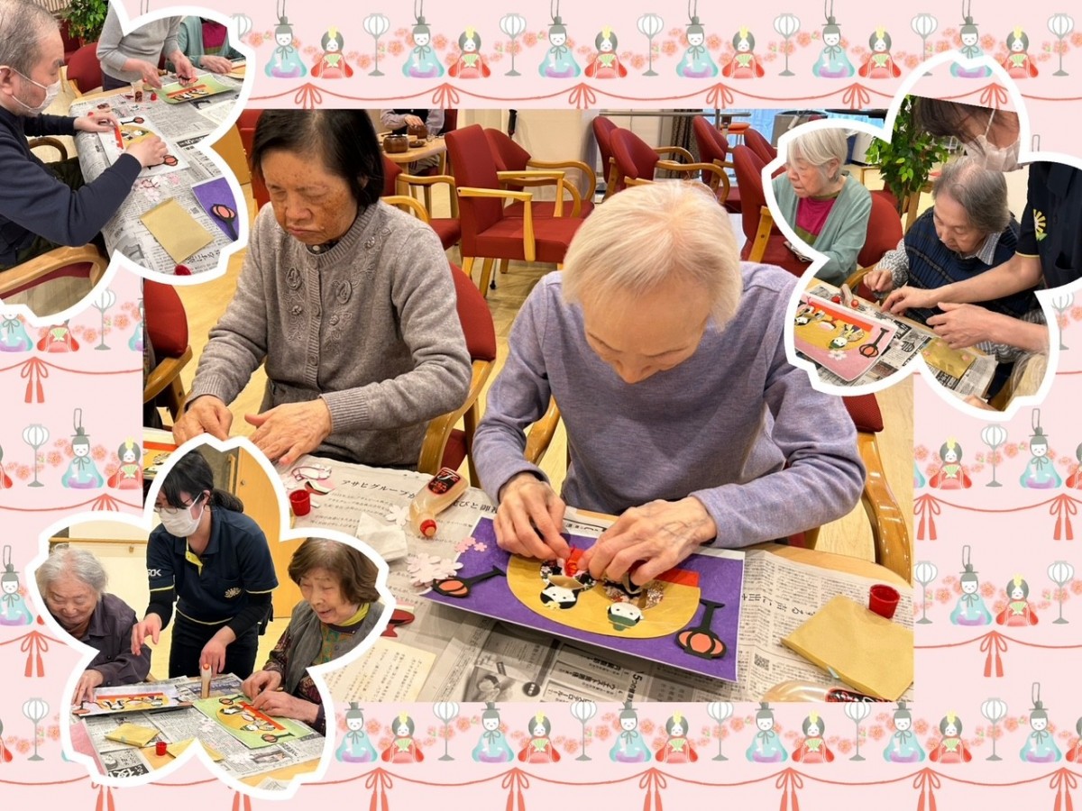 3月**桃の節句(ひなまつり)**にちなんだ制作レクの様子を行いました。